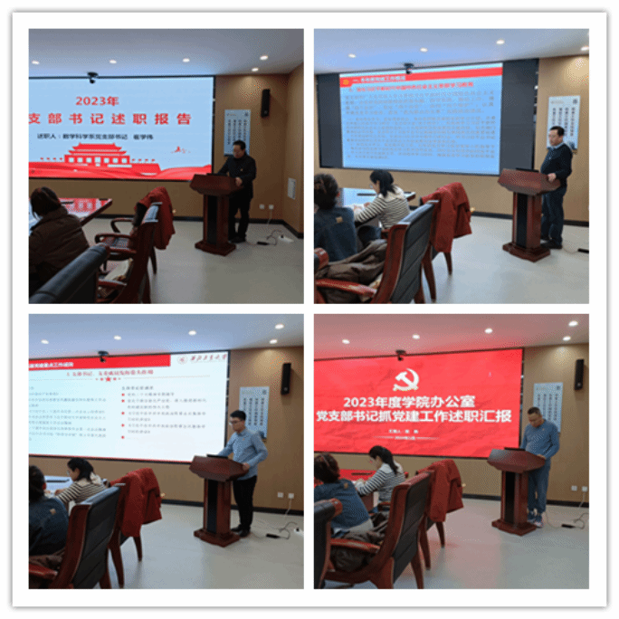 会上,王莉向与会人员阐述了2023年度基层党支部述职考核的六个方面主要内容,20名党支部书记围绕深入学习贯彻习近平新时代中国特色社会主义思想和党的二十大精神、落实基层党建工作重点任务、强化党支部政治功能、做好师生思想政治教育、落实全面从严治党要求、加强纪律建设和廉洁教育等方面进行了汇报,总结了党支部工作主要成绩和特色亮点,反思工作中存在的突出问题,分析产生原因,并针对性地提出了下一步工作思路与努力方向依次开展现场述职,参会人员根据述职情况进行现场打分。