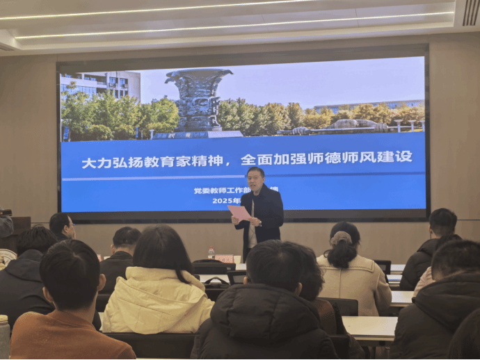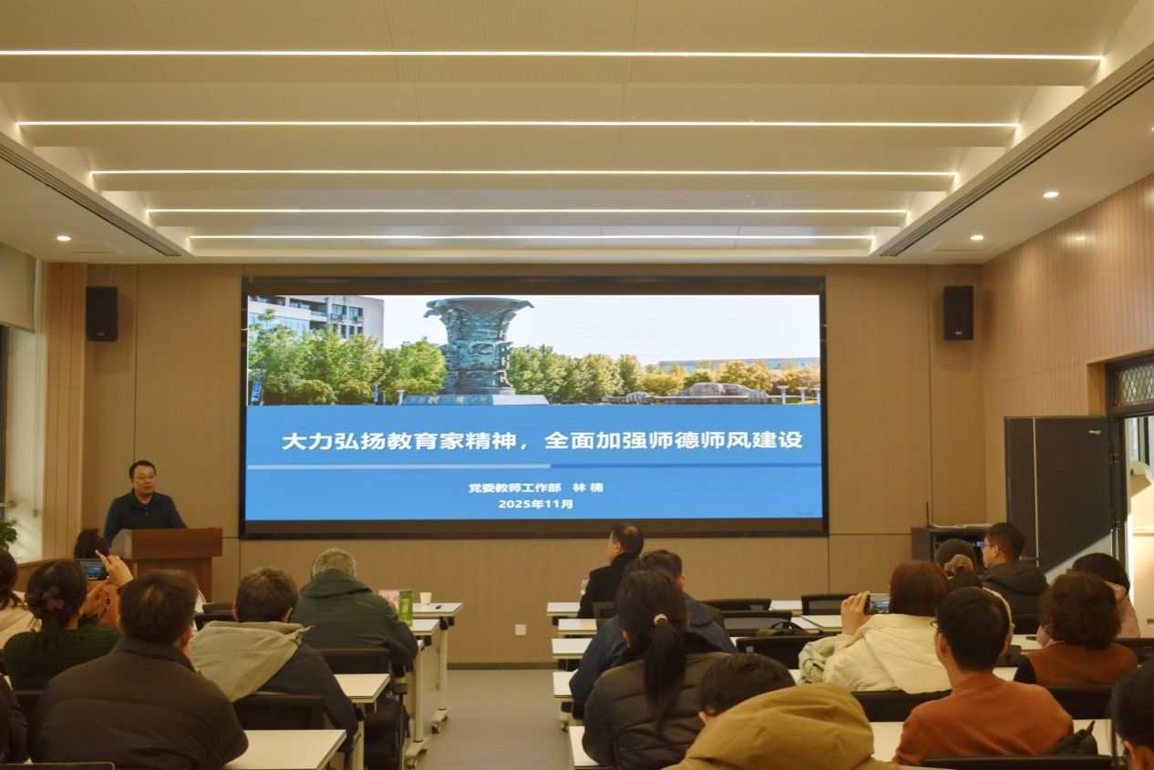 为深入学习贯彻习近平总书记关于教育的重要论述,落实立德树人根本任务,进一步团结凝聚学院广大教师以更加奋发有为的精神状态投身教育强国建设实践,大力弘扬教育家精神,为学校实现“天下工大、世界三航”远景目标注入强劲动力。12月4日,香香腐宅 邀请校党委教师工作部副部长林楠面向全体教师党员作了题为《大力弘扬教育家精神,全面加强师德师风建设》的专题报告。副院长徐根玖主持会议。