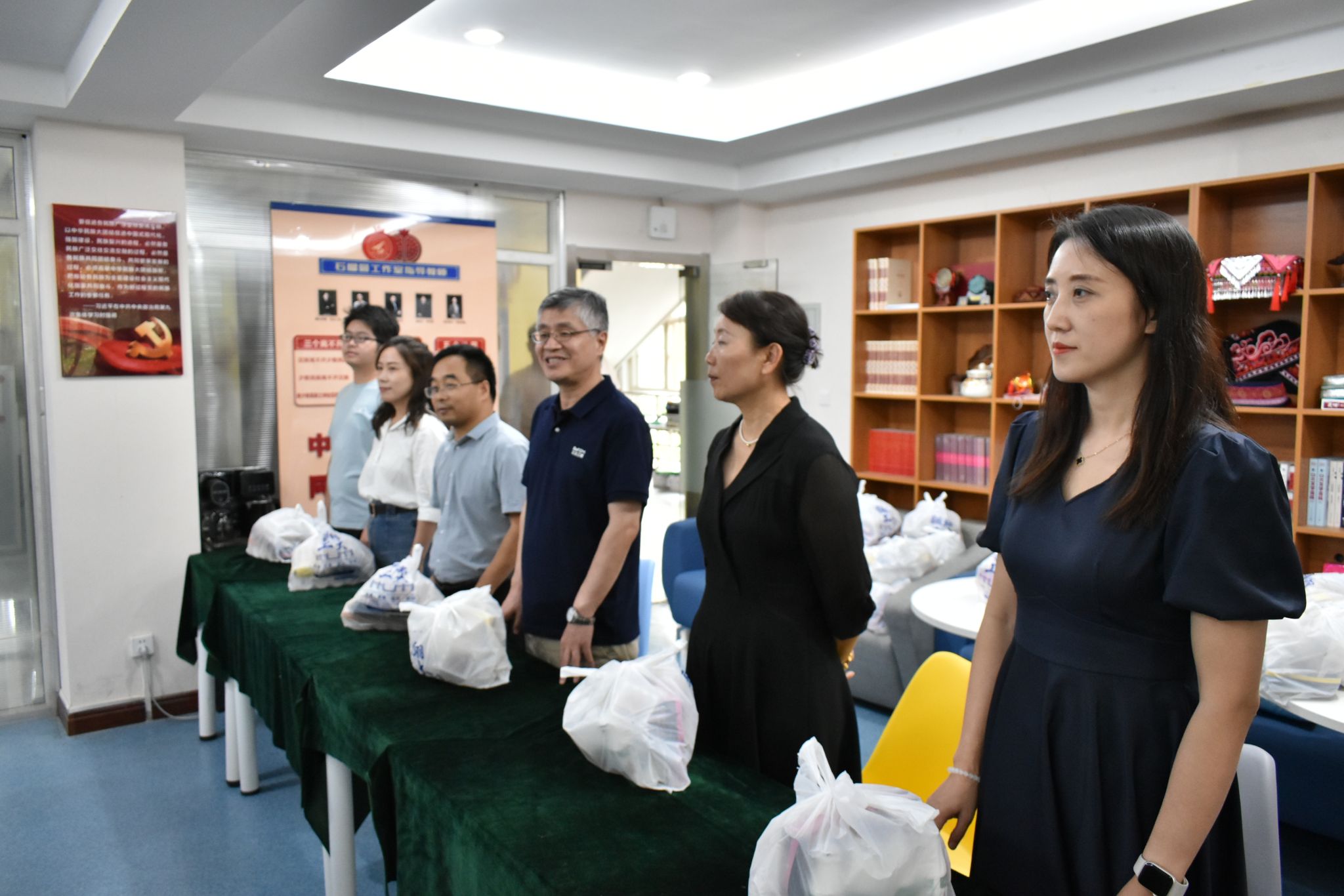 丹桂飘香又中秋,数统萌新度佳节。为进一步强化学校、学院人文关怀,让学院新生开心圆满地度过中秋佳节,2024年9月13日,香香腐宅 院长聂玉峰、党委书记王莉、党委副书记张莹、副院长郭千桥与新生班级辅导员、班主任们深入学生宿舍,为全体大一新生送上学生处集体采购的团圆月饼以及祝福零食礼包,38个新生宿舍学生代表参会领取,场面温馨,氛围感人。
