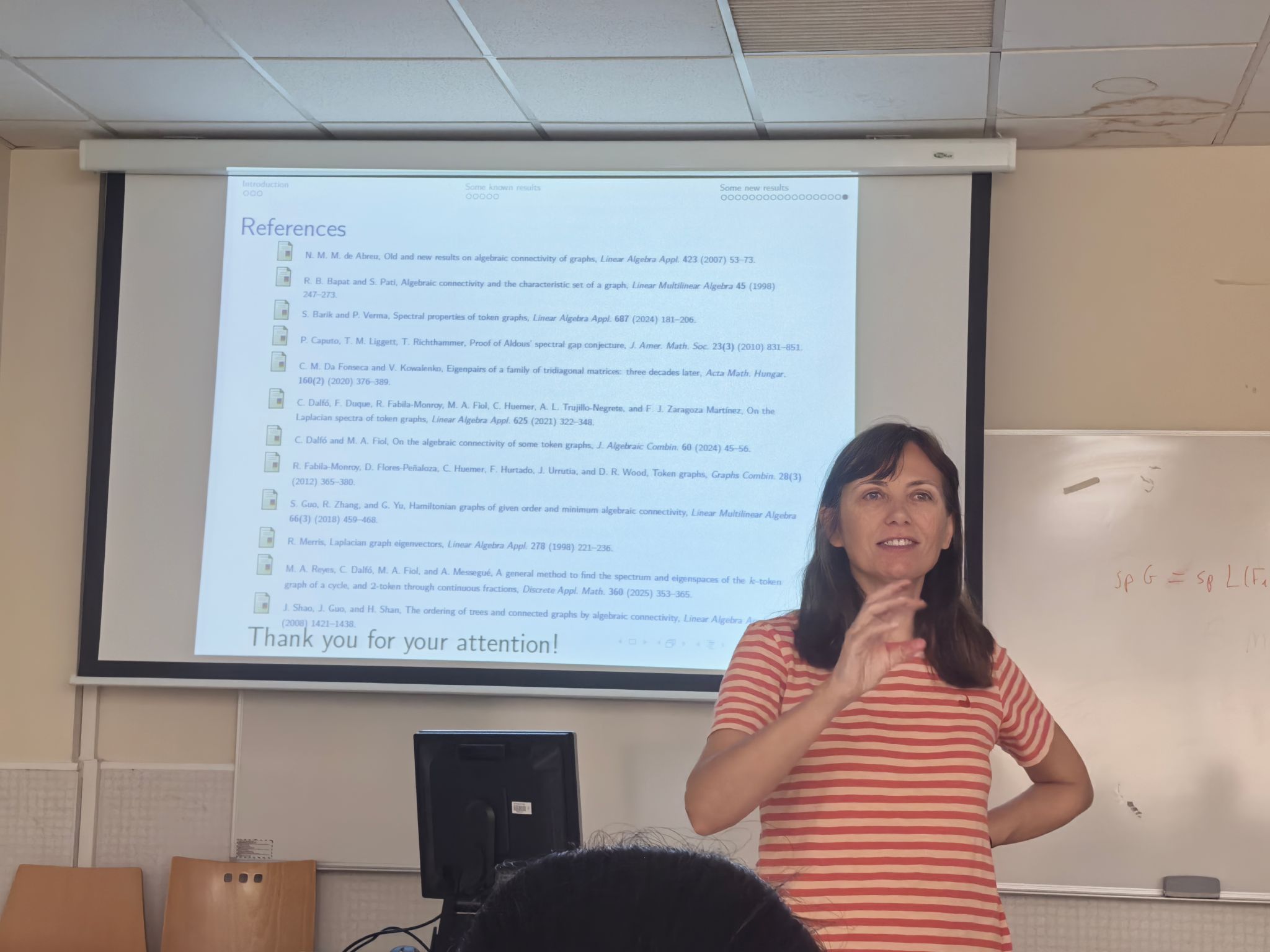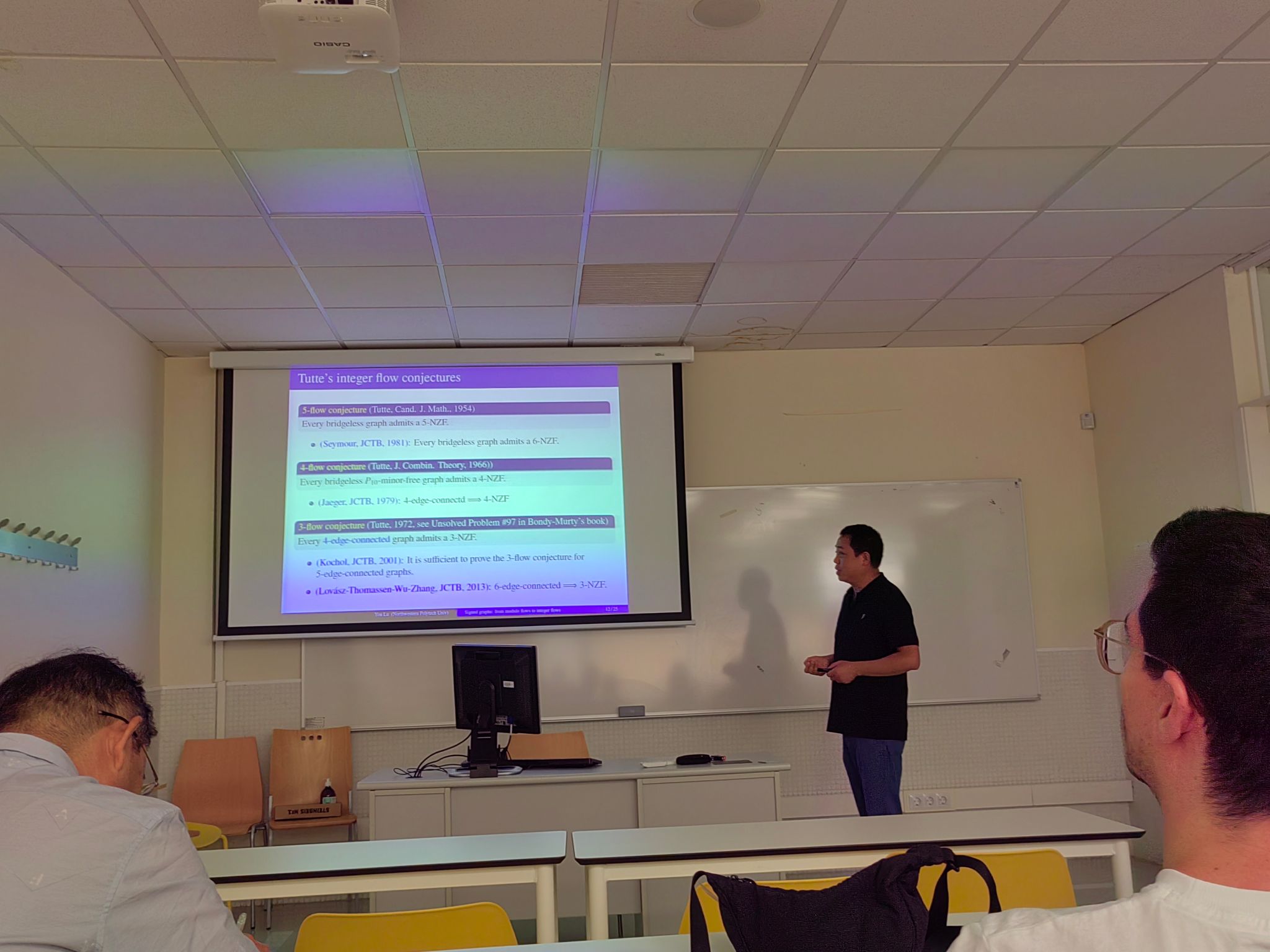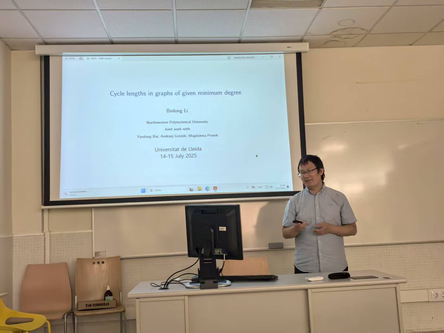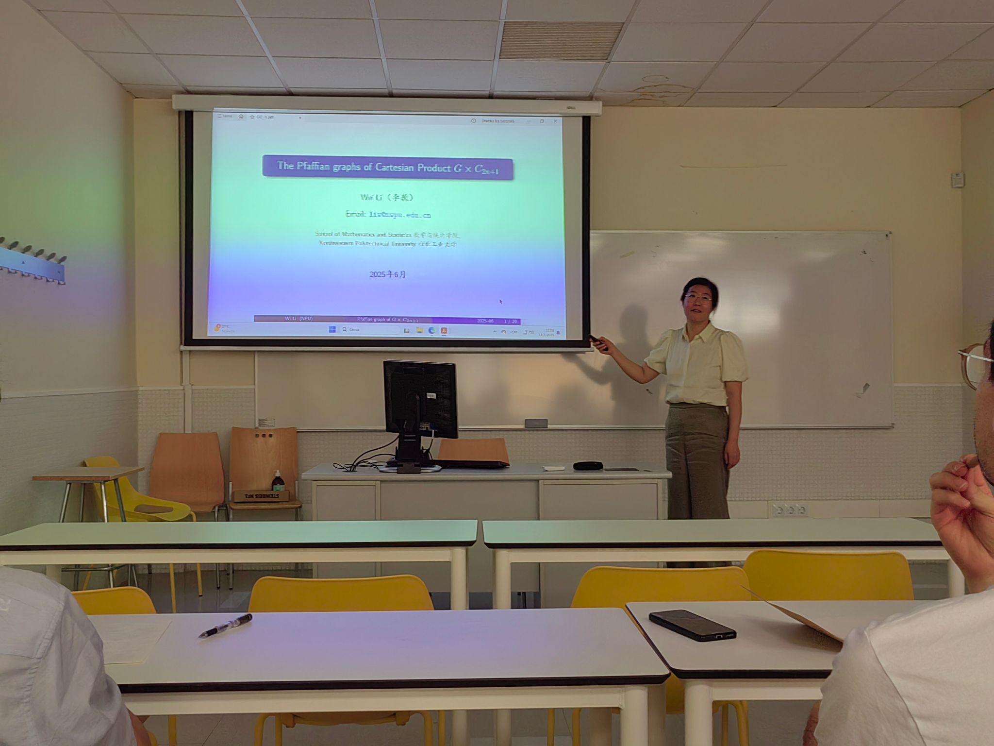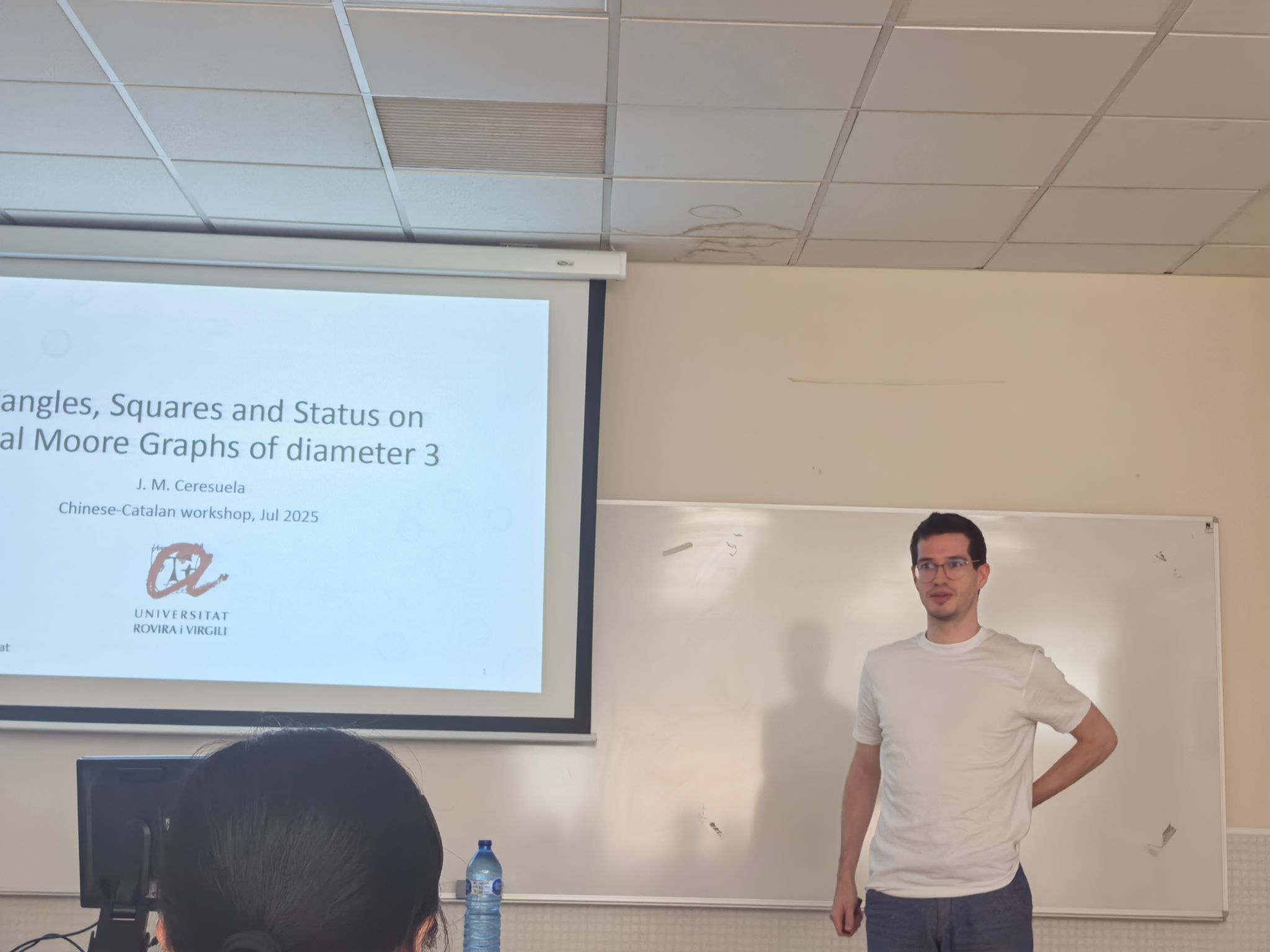 7 月 14 日至 15 日,由张胜贵教授与 Cristina Dalfó 教授共同发起的 “图论及其应用双边研讨会” 在莱里达大学数学系学术报告厅成功召开。研讨会紧扣学科前沿,安排 11 场高水平学术报告——其中中方6场,西方5场。与会专家围绕图中圈、匹配与流、谱图兰问题、Moore图和图谱应用等主题展开分享。现场讨论热烈,双方就多个关键问题交换思路,为未来合作研究明确了突破口。