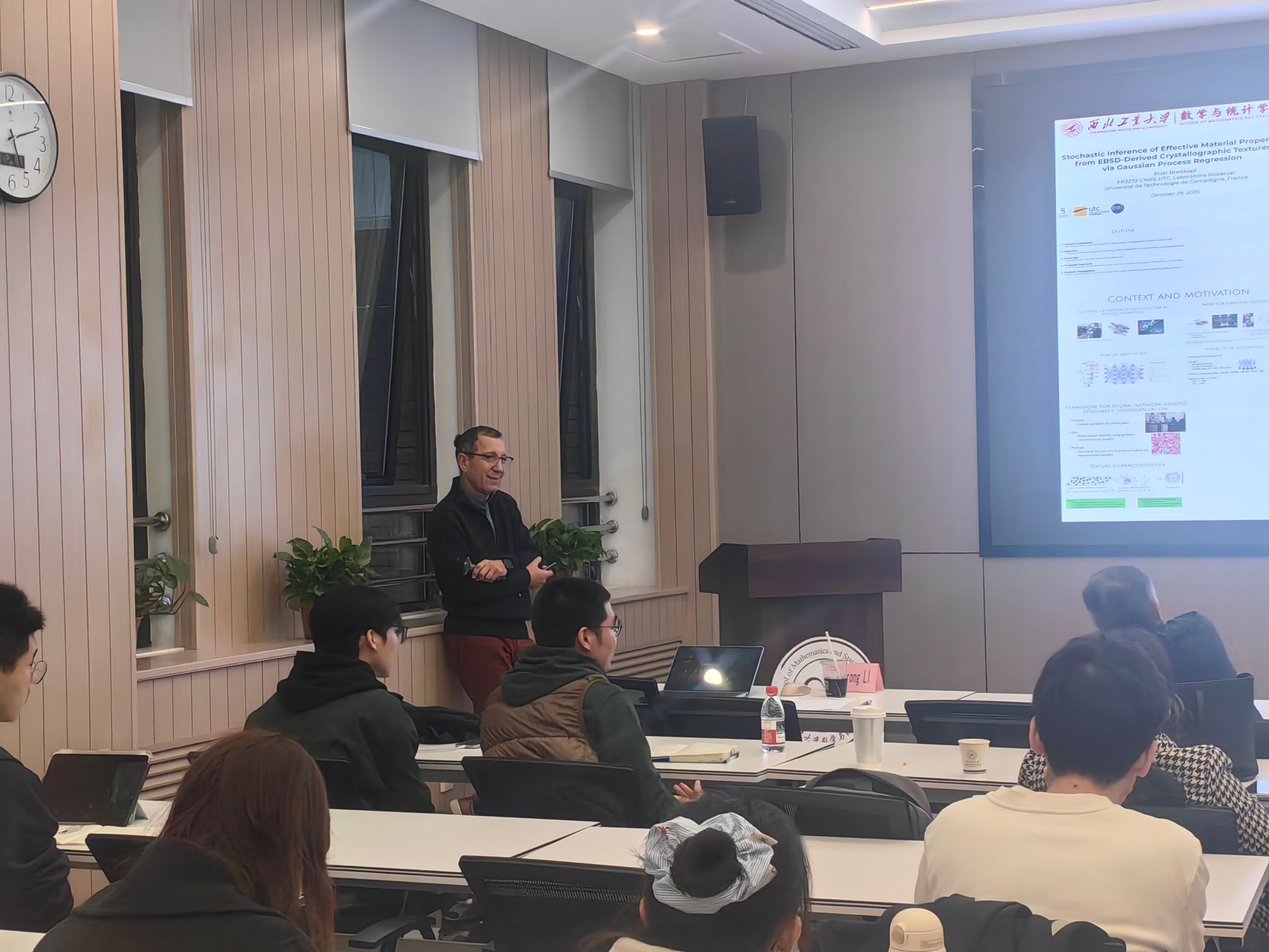 为深入推进学院国际化建设,拓展师生国际学术视野,营造浓厚交叉学科学术氛围,2025年10月29日,应我院肖曼玉教授邀请,法国索邦大学联盟成员贡比涅技术大学Piotr Breitkopf教授来访我院,做客“九章国际论坛”,为师生带来一场高水平的学术报告。院长聂玉峰教授、党委副书记张莹教授、副院长都琳教授、国际交流合作办公室主任肖曼玉教授、秘书李卓榕及学院部分师生共同参与本次活动。讲座由肖曼玉教授主持。
