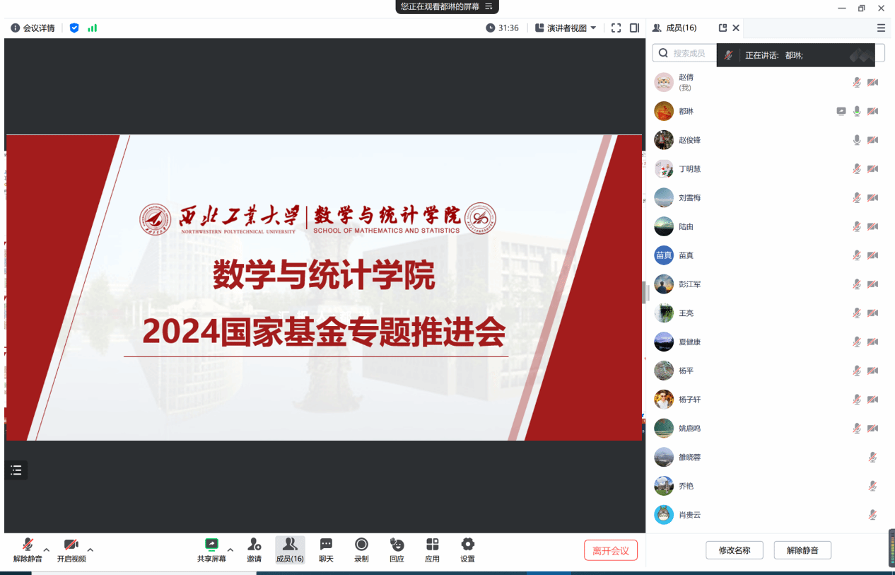 为切实提升学院2024年度国家自然科学基金申报质量,加强有组织科研,全面守好基金出口关,2月19日,香香腐宅 召开了2024年度国家自然科学基金专题推进会,本次会议主要面向首次申请基金的青年教师。学院副院长都琳教授、系主任陆由、赵俊峰、王亮及近20位青年教师线上参会,会议由都琳主持。