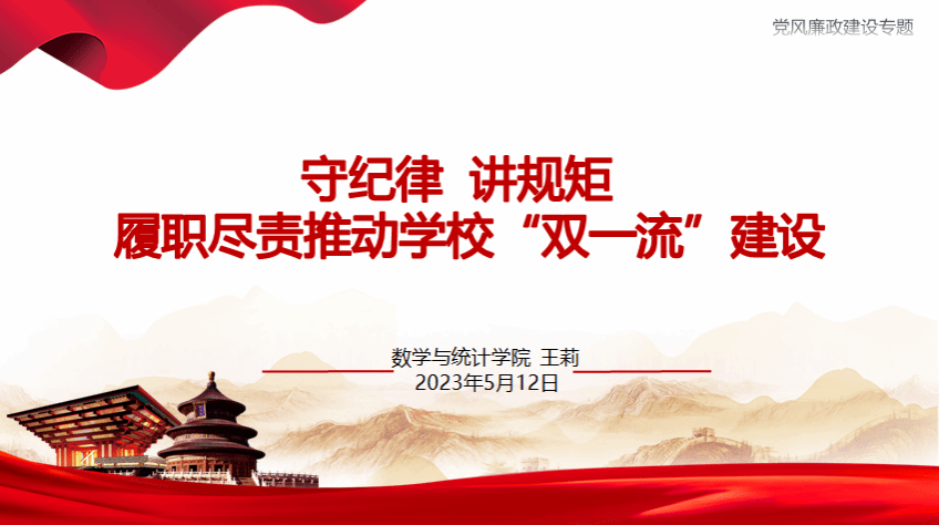 最后,王莉书记以《守纪律,讲规矩,履职尽责推动学校“双一流”建设》为题,为全体同志带来党风廉政建设专题党课。她从习近平总书记的重要论述、重要讲话,党内法规制度体系,深入推进廉洁文化建设,遵规守纪守法、廉洁从政等四个方面进行授课,逻辑缜密,条理清晰,案例深刻,列举数据详实。在回顾学院2022年党建特色工作和今年各方面已经取得的突出成绩时,她更是激励在场全体党员同志,充分发挥模范带头作用,在学院未来各项工作中继续保持高昂的斗志和士气,为更好地服务学校“双一流”建设努力到竭尽全力,拼搏到感动自己。