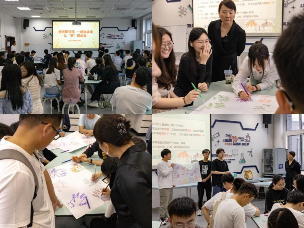 会议第一环节,由王莉老师以“奋进新征程,一起向未来,从‘新’再出发”为主题,开展了“小手印”团队建设活动,学生踊跃参与,分享交流了自己对未来的期许与校园生活里的收获;接着王莉老师与在场同学一同回忆校园生活,强调了校训“公诚勇毅”对学生未来生活的重要意义,希望未来同学们面对学习与工作时要践行“三实一新”校风,做有家国情怀、追求卓越、引领未来的工大人。王莉老师还与同学们一起展望未来,告诫学生走入职场后,要勇于尝试,适应新环境,淡化个人意识,树立团队、合作意识,职场逐梦,扬帆起航。