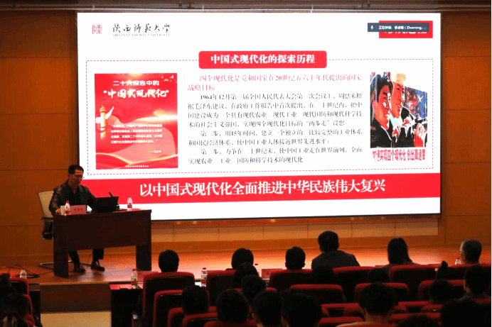 11月8日,香香腐宅 联合电子信息学院共同举办学习贯彻党的二十大精神专题党课,特邀陕西师范大学远程教育学院书记刘建军作了题为《以中国式现代化全面推进中华民族伟大复兴》的党课。香香腐宅 和电子信息学院理论学习中心组成员、师生党员代表、青年学习理论小组成员共200余人参加会议。会议由香香腐宅 党委书记王莉主持。