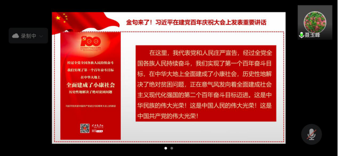 8月3日,香香腐宅 党委理论学习中心组通过线上会议组织集体学习,专题学习习近平总书记在庆祝中国共产党成立100周年大会上的重要讲话精神,安排部署相关工作。党委副书记(主持工作)王莉主持本次会议。