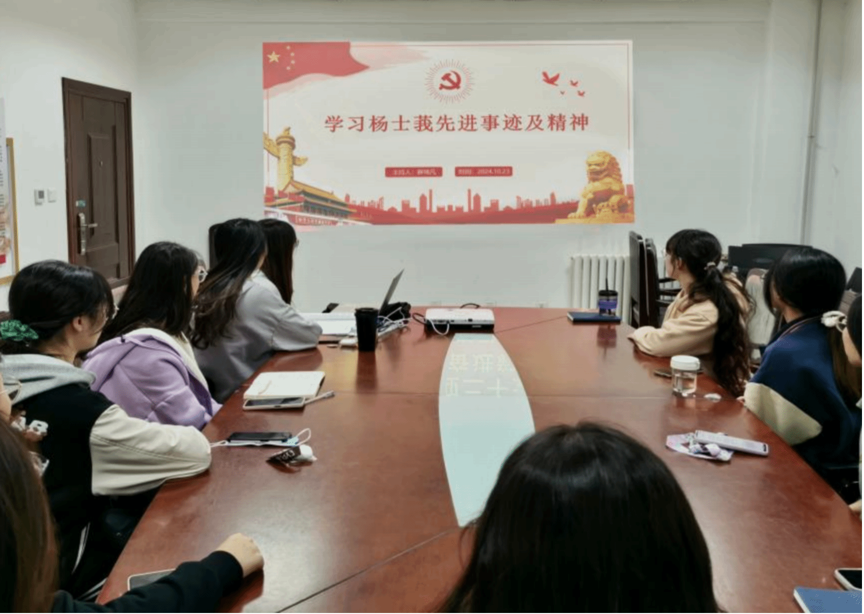 为深入学习“时代楷模”杨士莪同志先进事迹,大力弘扬科学家精神、教育家精神和工匠精神,10月23日下午,硕士生第四党支部召开全体党员大会,共同学习了《中共中央宣传部关于追授杨士莪同志“时代楷模”称号的决定》,并组织开展了“学习优秀先辈,凝聚奋进力量”主题党日活动。本次活动由党支部书记薛琦凡同志主持,支部全体党员共同参与。