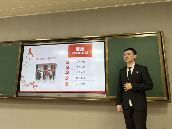 各发展对象依次讲述了入党动机、对党的基本认识及自身学习情况、生活表现等。各评委就答辩学生的综合表现进行了针对性点评,并在思想动态层面鼓励各学生坚定理想信念,在日常生活中以身作则,用党员先锋模范作用严格要求自己。