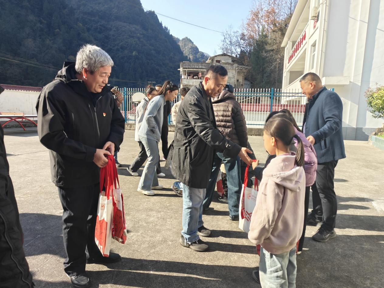 随后,学院一行前往宝山村齐家地小学开展教育帮扶活动,向学生们捐赠笔记本、文具等学习用品。彭江军老师以《数学之美·几何篇》为主题,为孩子们带来一场生动有趣的公益讲座,激发他们对数学学科的兴趣。随行学生组织小学生共同跳起健美操,在互动中传递健康向上的生活理念。