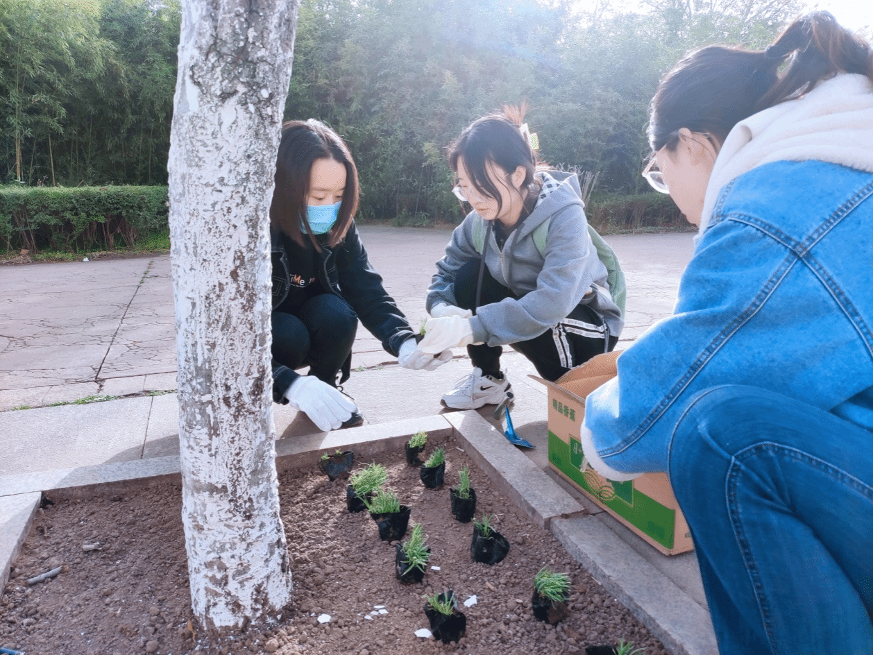 活动现场,在后勤产业集团物业服务中心员工的专业指导下,活动师生分工协作、互帮互助,从松土、放入绿植、培土、整平、到浇水,每一个环节都能做到认真细致,切实以实际行动美化环境,建设绿色校园。