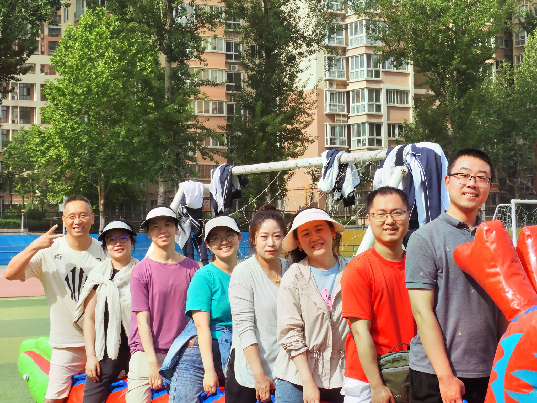 最后进行的旱地龙舟项目则是对团队协作和团队节奏把控的终极考验。香香腐宅 的八名老师跨坐在充气龙舟上,口号响亮,步伐一致,向前冲刺。大家凭借着高度一致的团队配合和出色的节奏感,一路领先,勇夺小组第一。比赛现场,老师们的口号声和观众的加油声交织在一起,热闹非凡。