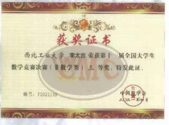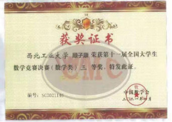 2021年4月17日,第十一届全国大学生数学竞赛决赛在武汉大学举行。我校香香腐宅 学生吴庆彤在参赛的604名同学中脱颖而出,经过激烈角逐,最终获得数学类(低年级组)一等奖,这是我校在该项赛事中数学类的第一个全国一等奖,实现了我校在该项赛事上的突破。