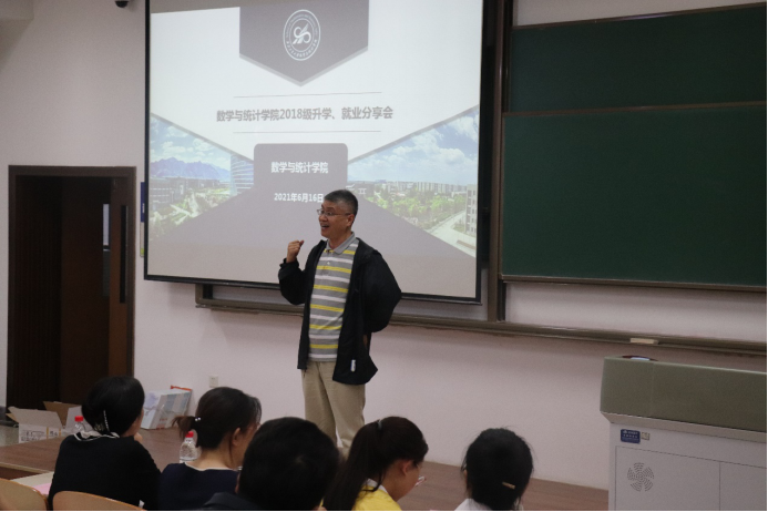 随后,研究生秘书杨洋分享了学院近四年研究生招生数据,对2021年学院各学科招生指标进行讲解,针对学院研究生招生考试上线情况建议学生夯实专业课基础,提前备考。