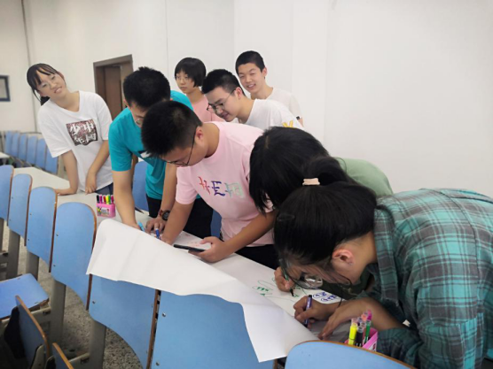随后,王莉老师带着同学们开展了主题为《以终为始,不负青春,再启新程,载梦起航》的破冰活动。在王老师的组织下,学生们按照班级分成10个小团队,每个团队成员在白纸上画出手印,分别在手印的五指上写上自己的姓名、最突出的性格特点、最感兴趣的事情、最具竞争力的能力、大学里最期待的收获,并在纸上写出团队名称和口号。完成后每个团队依次上台展示。整个过程中大家都非常积极,同学们的欢笑声和掌声不断!展示中看到团队名称各具特色,有的数学味浓厚,有的富有诗意又蕴意不凡,有的紧扣国家对青年的寄托和期许。同学们的讲解也是特点鲜明,有的伴着家乡口音诙谐幽默地讲出,有的像解读一首诗般娓娓道来,充分展现出了我院大一新生的个性和风采!