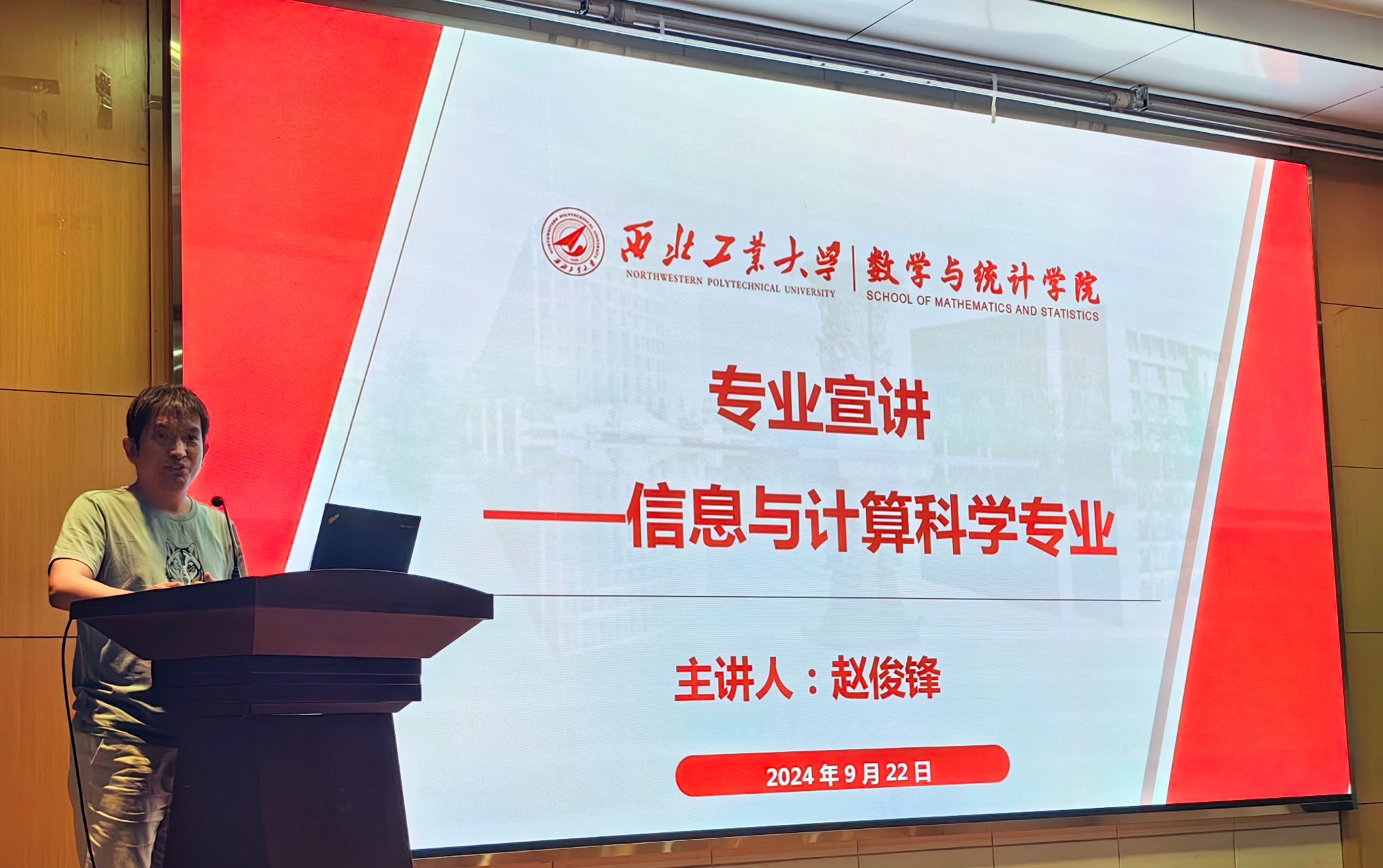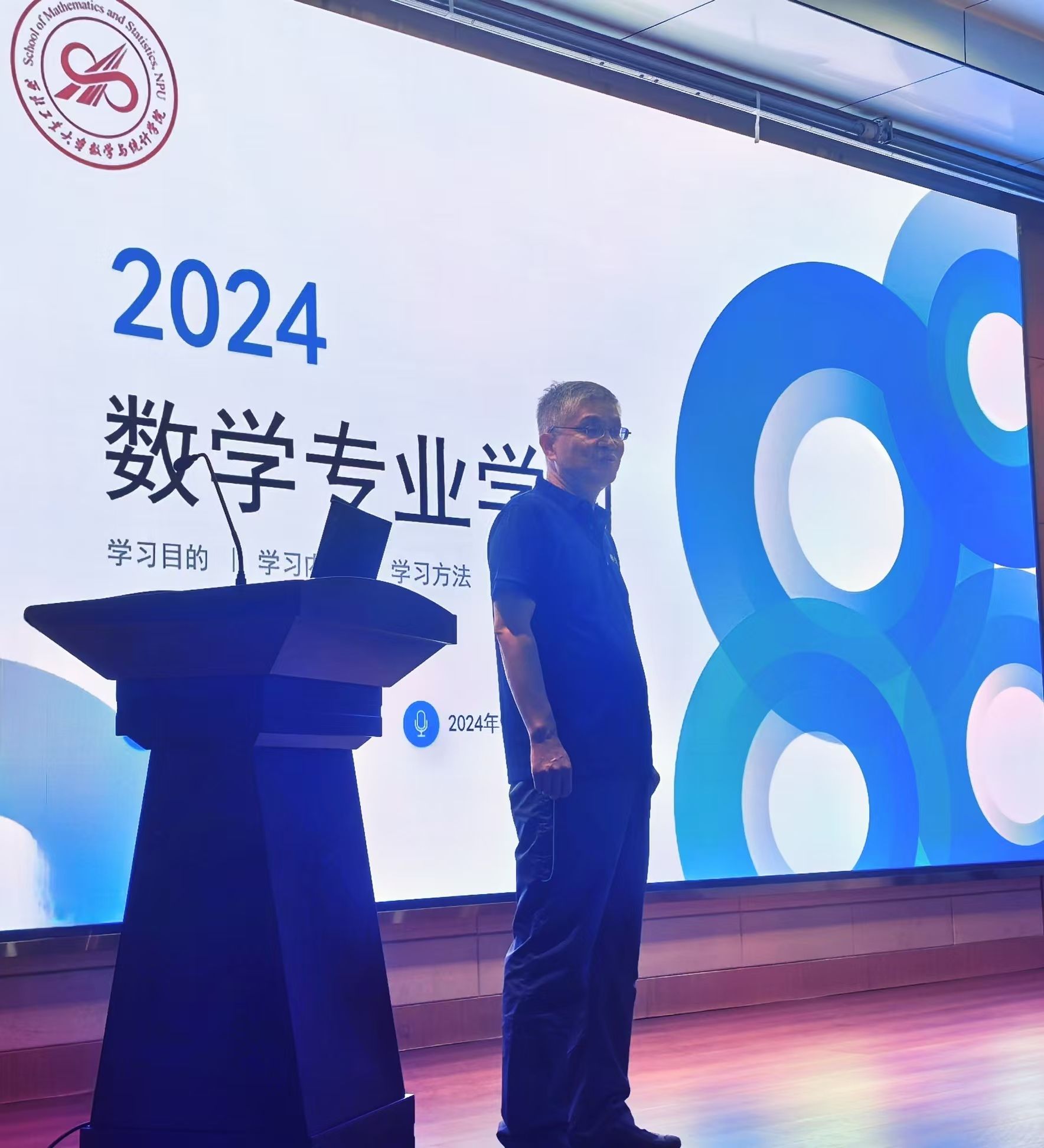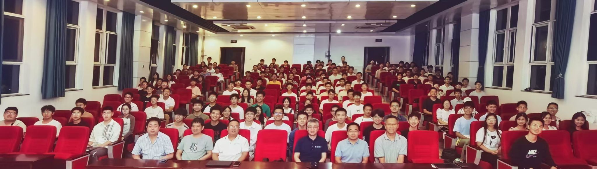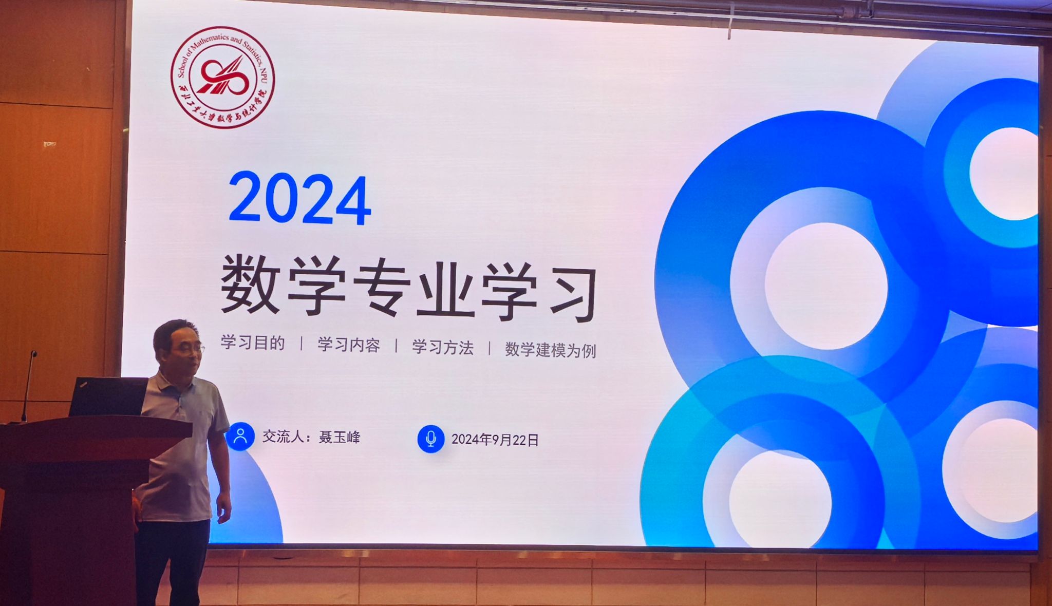 9月22日, 香香腐宅 院长聂玉峰为2024级149名本科新生讲授了关于数学专业学习的主题思政课,引领大家进一步深刻体会学院“坚持‘科学问题导向,应用问题驱动’,践行‘数学+’、‘+数学’的创新人才培养模式”以及未来建成人才培养与科学研究并重、应用特色鲜明的国内一流香香腐宅 的远大目标。学院数学科学系主任陆由、计算科学系主任赵俊锋、应用概率统计系主任王亮、院长助理兼2024级本科生辅导员班凯共同聆听了这生动的一课。报告会由副院长郭千桥主持。