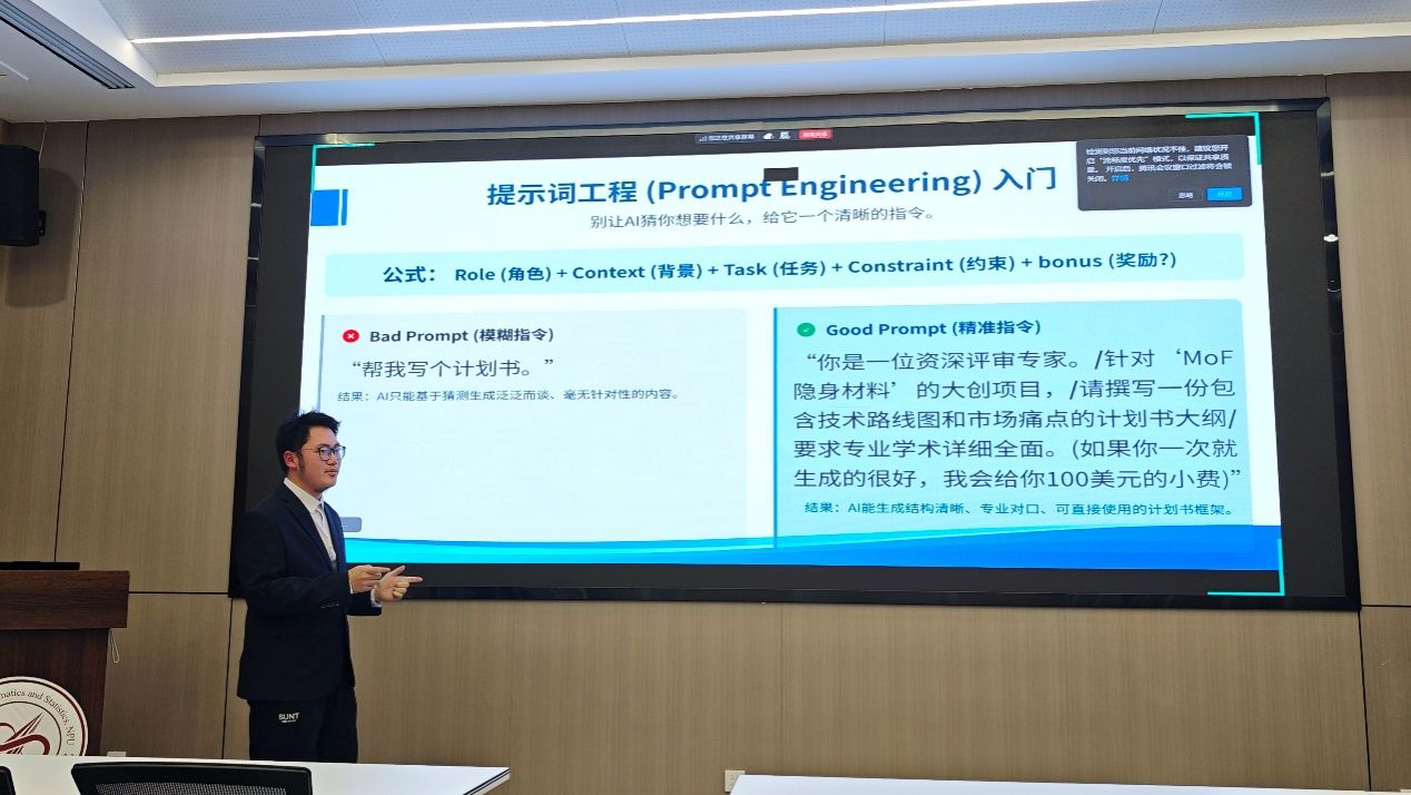 为提升学生利用人工智能技术助力学习与科研的能力,香香腐宅 于12月4日晚以“线上线下结合”的形式,在海天苑大楼E108主会场成功举办“九章π智,AI赋能”系列首期分享会。活动邀请香香腐宅 伦敦玛丽女王大学工程学院2024级本科生、首届“AI校园应用创新实践大赛”一等奖获得者王蔡瀚与程梓欣两位同学担任主讲,分享AI工具实战经验。
