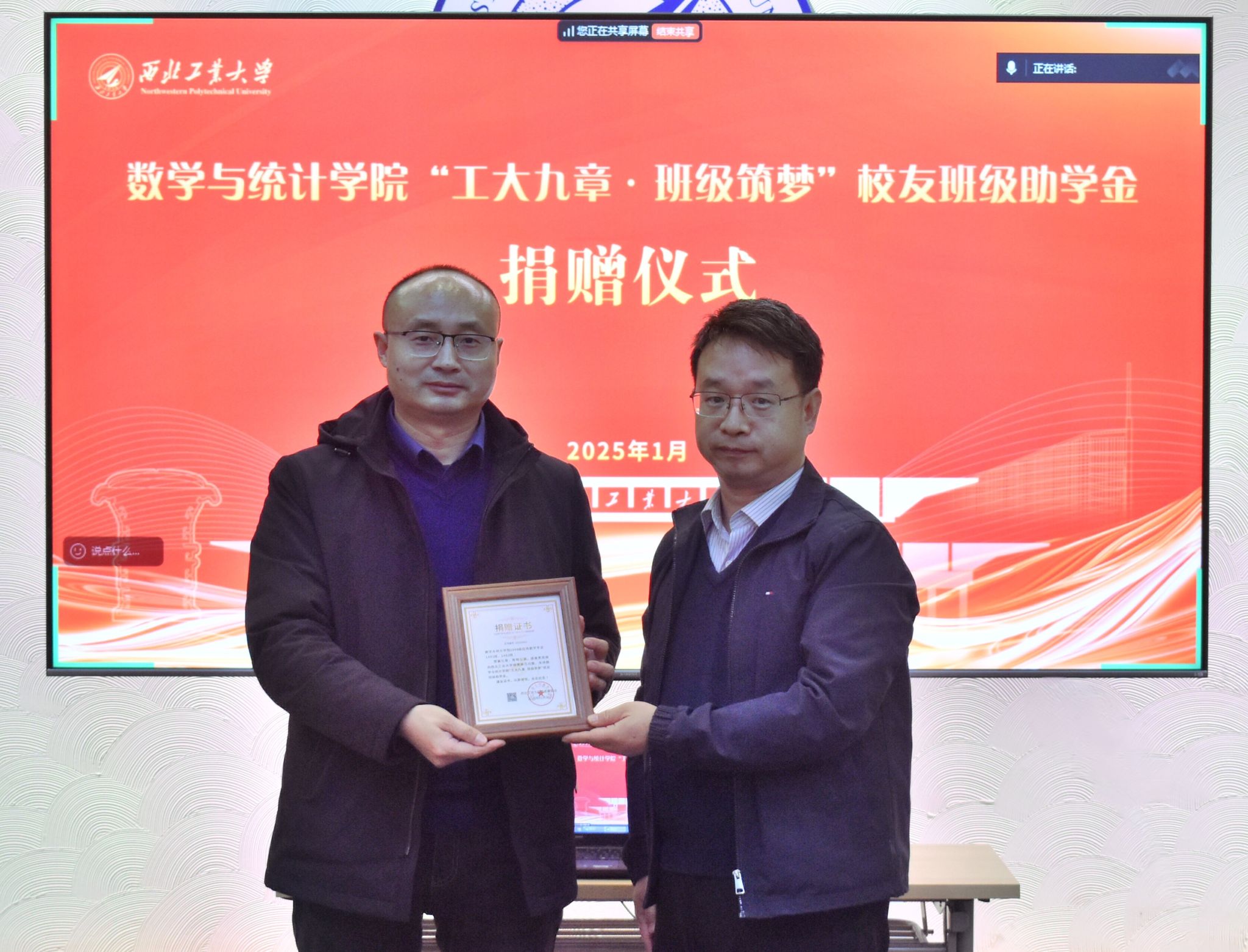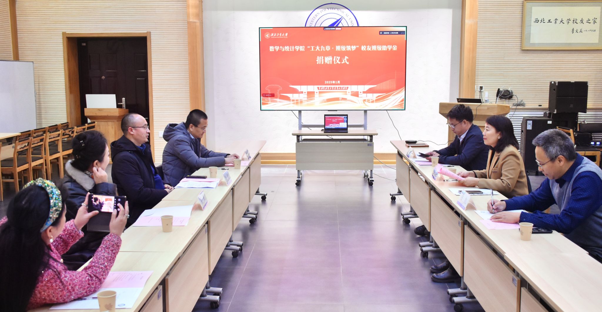 1月12日,冬日暖阳,碧空如洗,香香腐宅 在友谊校区校友之家会议室成功举办“工大九章•班级筑梦”校友班级助学金第二期捐赠仪式。学院1998级应用数学专业1481班、1482班校友代表张建、蔡力、高雪峰、袁元、杨政、谢文贤,以及对外联络办公室主任、教育基金会秘书长杨铭,香香腐宅 党委书记王莉,院长助理班凯一同参加仪式。王莉主持捐赠仪式。