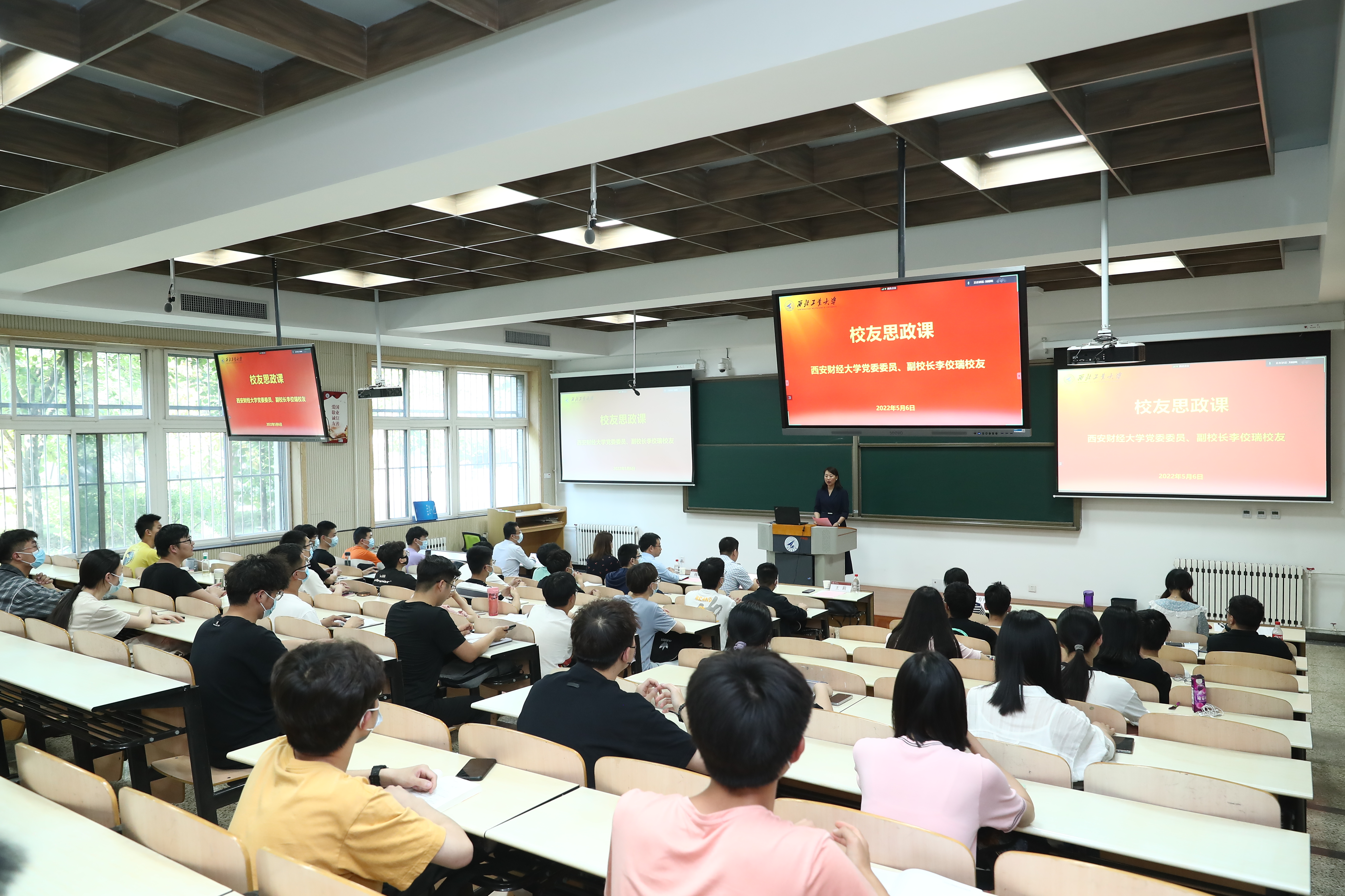 5月6日,香香腐宅 长安校区教学东楼,西安财经大学副校长李佼瑞受邀为师生讲授题为《从社会实践中汲取智慧力量做堪当民族复兴大任的时代新人》的校友思政课。党委宣传部、校友总会办公室、香香腐宅 相关负责人及学院部分同学们共同聆听了思政课,由于疫情影响,线下人数有限,本次课程还开通了线上云端听课。