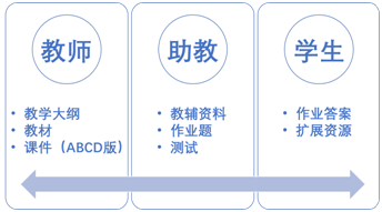 助教为学生提供一定的教辅资源并负责作业和测试资源的管理;作业的答案则由助教从优秀作业中摘录提供。