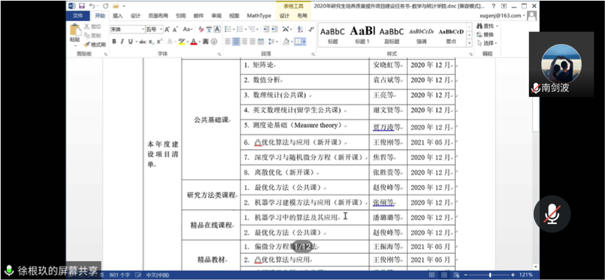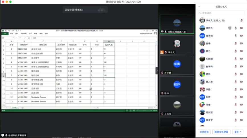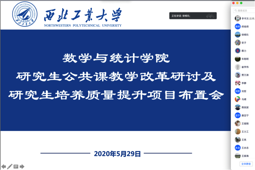 为贯彻落实教育部“在线教学与线下课堂教学质量实质等效”的要求,有效做好学生分批次返校期间线上、线下教学活动的平稳衔接,确保研究生招生规模扩大之后的数学公共课教学质量,规划新形势下研究生公共课的改革发展思路,推进公共课的教学改革,5月29日,香香腐宅 通过腾讯会议召开研究生公共课教学改革研讨及研究生培养质量提升项目布置会,学院院长聂玉峰、副院长徐根玖、主管研究生工作的二级学科负责人、公共课负责人、首席教授及任课教师及研究生培养质量提升项目负责人参加了此次会议,会议由徐根玖主持。