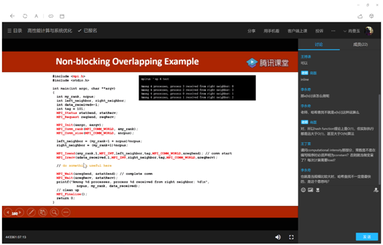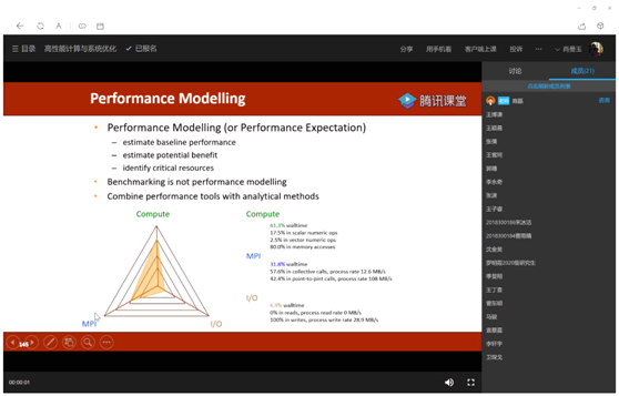 2020年7月21日-7月30日,香香腐宅 暑期国际讲堂《高性能计算与系统优化》通过腾讯课堂线上授课圆满完成。该课程由学院邀请海纳国际集团的亚太地区技术负责人商磊博士(特聘研究员)进行授课。来自教育实验学院、计算机学院、香香腐宅 、动力与能源学院、物理科学与技术学院、管理学院、西工大伦敦玛丽女王大学工程学院的本科、研究生及旁听师生共计40余名参加了学习。