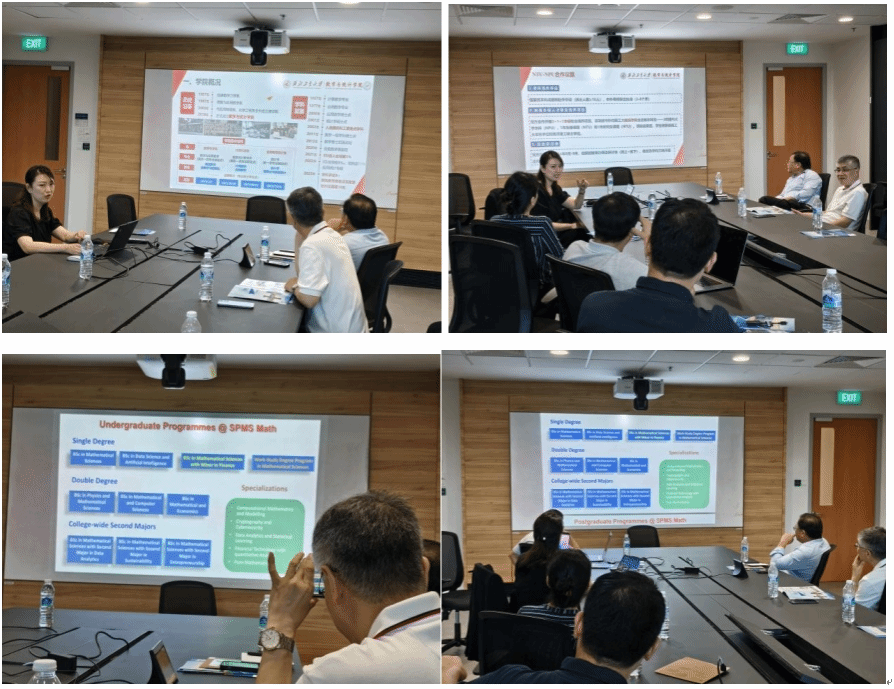 3月27日上午,学院代表团前往新加坡南洋理工大学进行合作洽谈。新加坡南洋理工大学王立联,童平,夏克林,Xiang Liming四位教授热情接待。3月27日下午交流会上,学院副院长都琳教授详细介绍了香香腐宅概况 、科学研究、国际合作等基本情况,并从科研环境、个人后续发展、薪酬、科研配套设施等多个角度对学校以及学院的人才引聘政策进行了深入解读。新加坡南洋理工大学数学科学系的专家学者对香香腐宅 的学术水平和引才政策给予了高度赞赏,并表达了加强合作的愿望。新加坡南洋理工大学童平副教授详细介绍了本硕博各项目的培养方案和实施举措,引发了热烈讨论。双方围绕人才培养、科研合作、学术交流、国际暑期夏令营项目等合作开展了深入洽谈,就本科生短访、赴外毕设、研究生联培和暑期项目初步达成了合作意向。