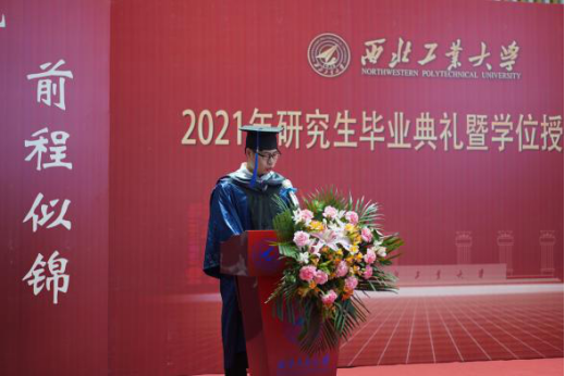 2021届优秀毕业生代表卢冬成同学在发言中回忆了在校园中成长奋斗的历程,表达了对母校、老师、同窗的感谢之情以及用优秀成绩为母校争光的决心,并代表全体毕业生为学院赠送毕业礼物--每个毕业生最喜爱和推荐的书籍,书籍里有学生的对学院的祝福,祝愿学院培养更多优秀学子,桃李满天下。