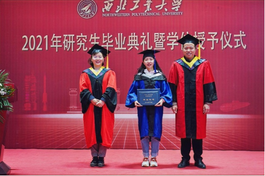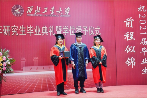 在庄严雄壮的国歌声中,典礼拉开帷幕。副院长徐根玖宣读香香腐宅 获得香香腐宅 2021年研究生“优秀毕业生”荣誉称号的学生名单。王莉和徐根玖为优秀毕业生代表颁发荣誉证书,并合影留念。