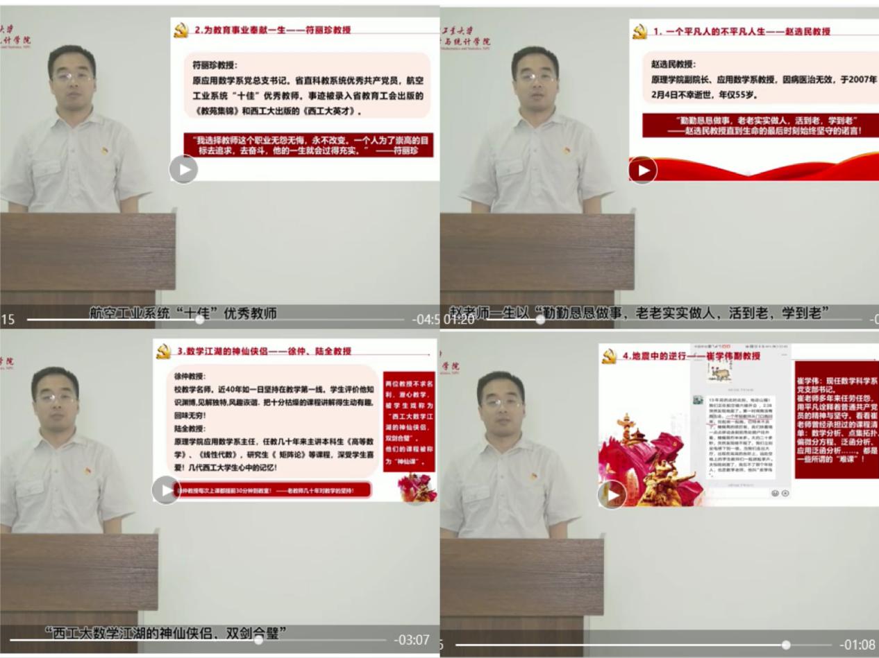 在会上王莉分享了郭千桥老师的“微党课”《讲西工大老一代数学人故事,悟共产党员精神》,通过“一个平凡人的不平凡的人生--赵选民教授”、“为教育事业奉献一生--符丽珍教授”、“数学江湖中的神仙侠侣--徐仲、陆全教授”、“地震中的逆袭——崔学伟副教授”等几位香香腐宅 教师的先进事迹,让青年教师亲身体会老教师对教育事业的无私付出,希望青年教师能够传承老一代数学人“勤勤恳恳做事,老老实实做人,活到老,学到老”的高尚品德。