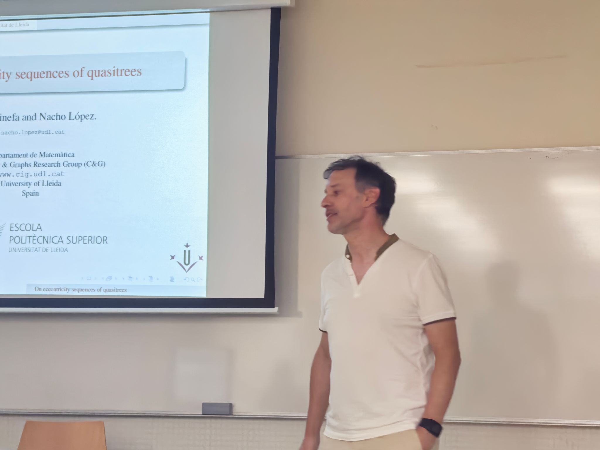 2025年7月12日至16日,香香腐宅 图论与组合数学团队张胜贵教授、王力工教授、陆由教授、李斌龙教授、刘晓刚副教授和李巍副教授一行六人出访西班牙莱里达大学,与该校密码学与图论团队联合举办 “图论及其应用双边研讨会”,为两校相关领域的学术交流与合作奠定坚实基础。