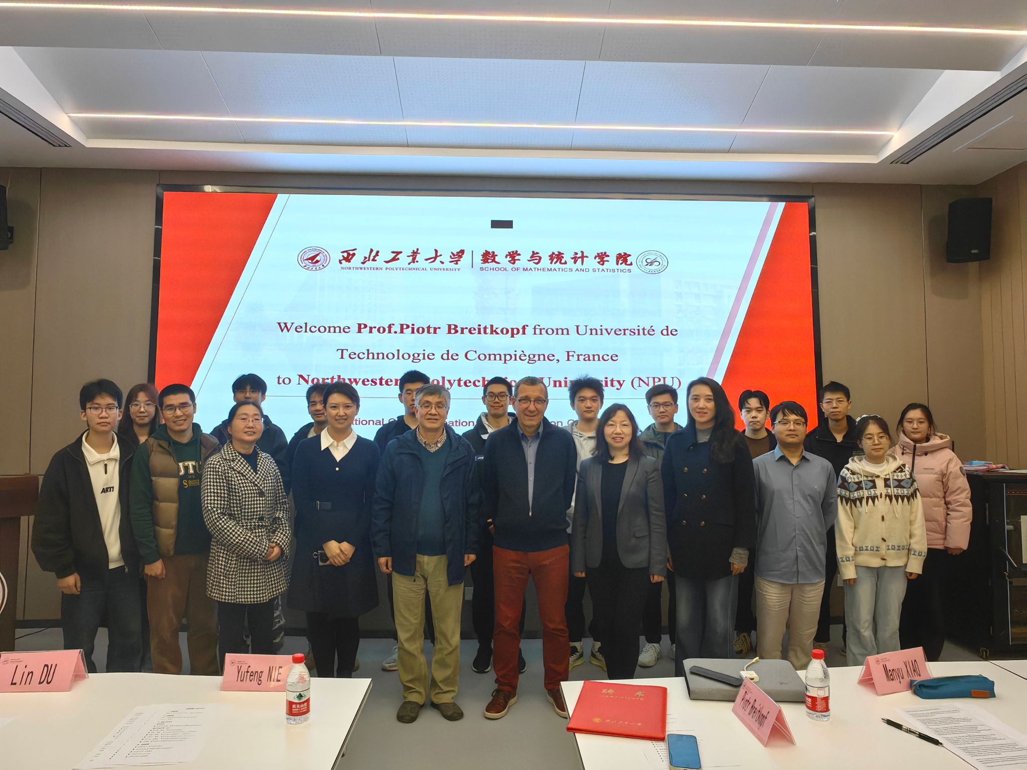 论坛伊始,聂玉峰院长代表学院致欢迎辞。他首先对Piotr教授的再次到访表示热烈欢迎,并回顾了去年率队访问法国贡比涅技术大学期间Piotr教授给予的热情接待。聂院长指出,Piotr教授此次做客“九章国际论坛”,不仅是两校深厚友谊的延续,更是推动双方科研合作深化与人才联合培养拓展的重要契机。他期待通过此次高水平交流,使学院师生能够近距离感受国际顶尖学者的学术风采与科研精神。致辞结束后,聂玉峰院长为Piotr教授颁发学校“客座教授”聘任证书,全体参会师生合影留念。
