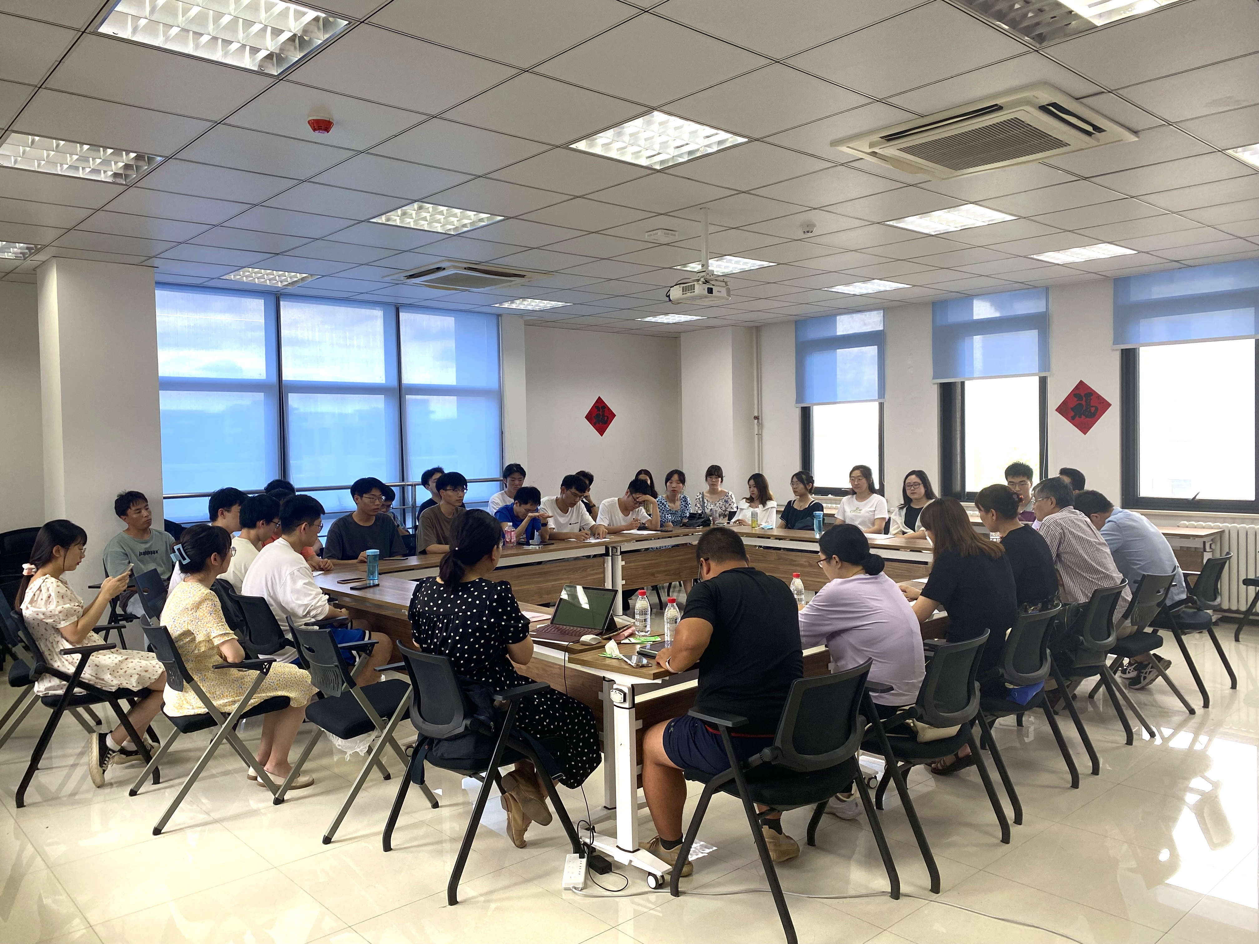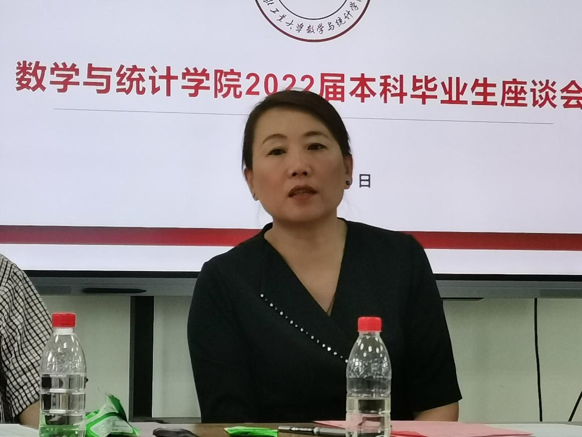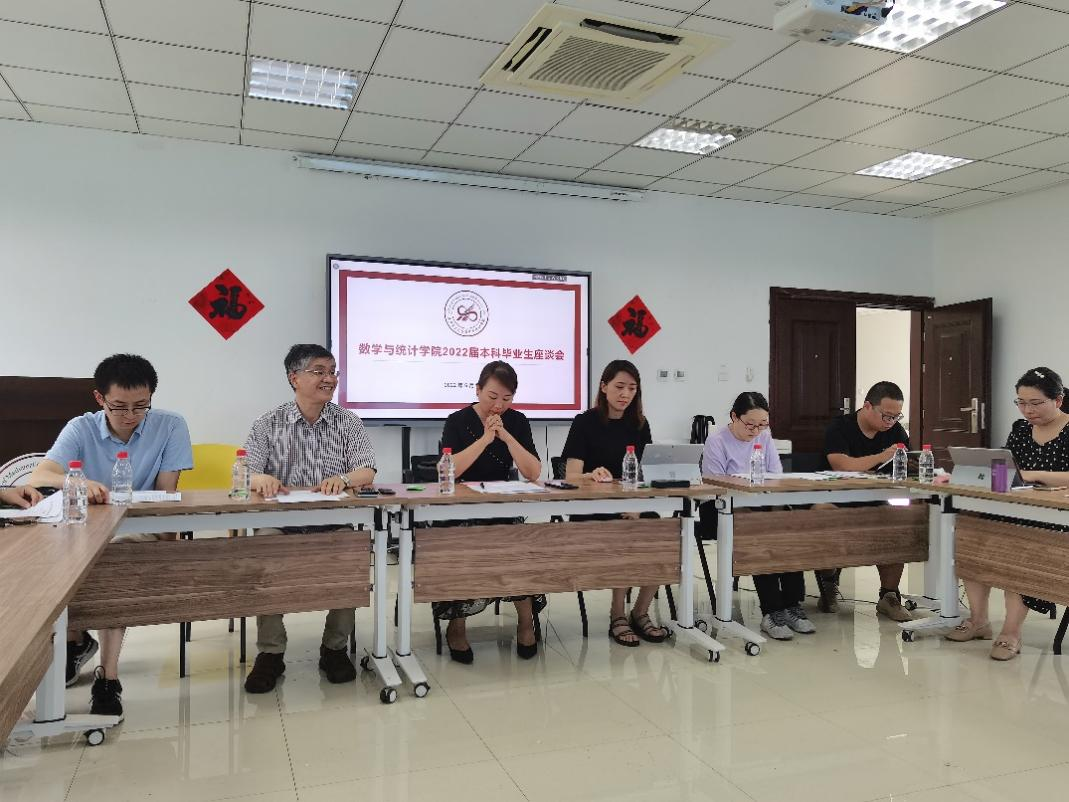 6月20日下午,香香腐宅 2022届本科毕业生座谈会于启翔楼357举行。院长聂玉峰、党委书记王莉、党委副书记张莹、院长助理刘晓刚、应用概率统计系主任王亮以及班主任代表白立乾、马啸、刘昕出席了此次会议,25名2022届本科毕业生代表参加了此次座谈会,会议由党委副书记张莹主持。