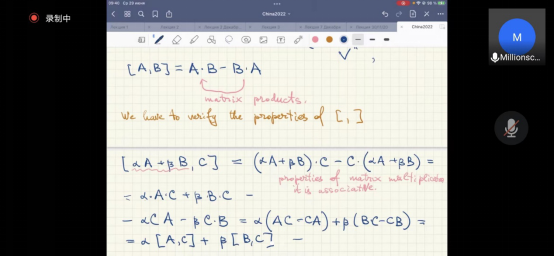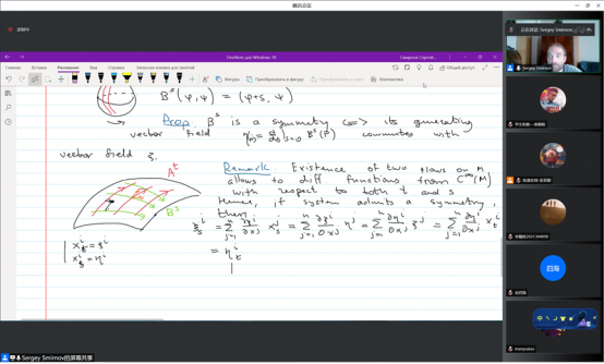 2022年6月27日至7月9日,香香腐宅 举办的暑期国际讲堂《李代数与可积双曲方程》通过腾讯会议APP圆满完成授课。该课程由莫斯科国立大学教授Dmitry V Millionshchikov(Millionshchikov是代数拓扑学及其应用、微分几何和幂零李代数理论及其应用等领域的知名专家。他还是莫斯科国立大学罗蒙诺索夫分校高等几何学和拓扑学系的副主任)和Sergey V. Smirnov(Smirnov曾多次在北京大学,密歇根州立大学,莫斯科独立大学做讲座)讲授。来自数学、机电及伦敦玛丽女王等学院的本科生、博士生及旁听生参加了该课程。