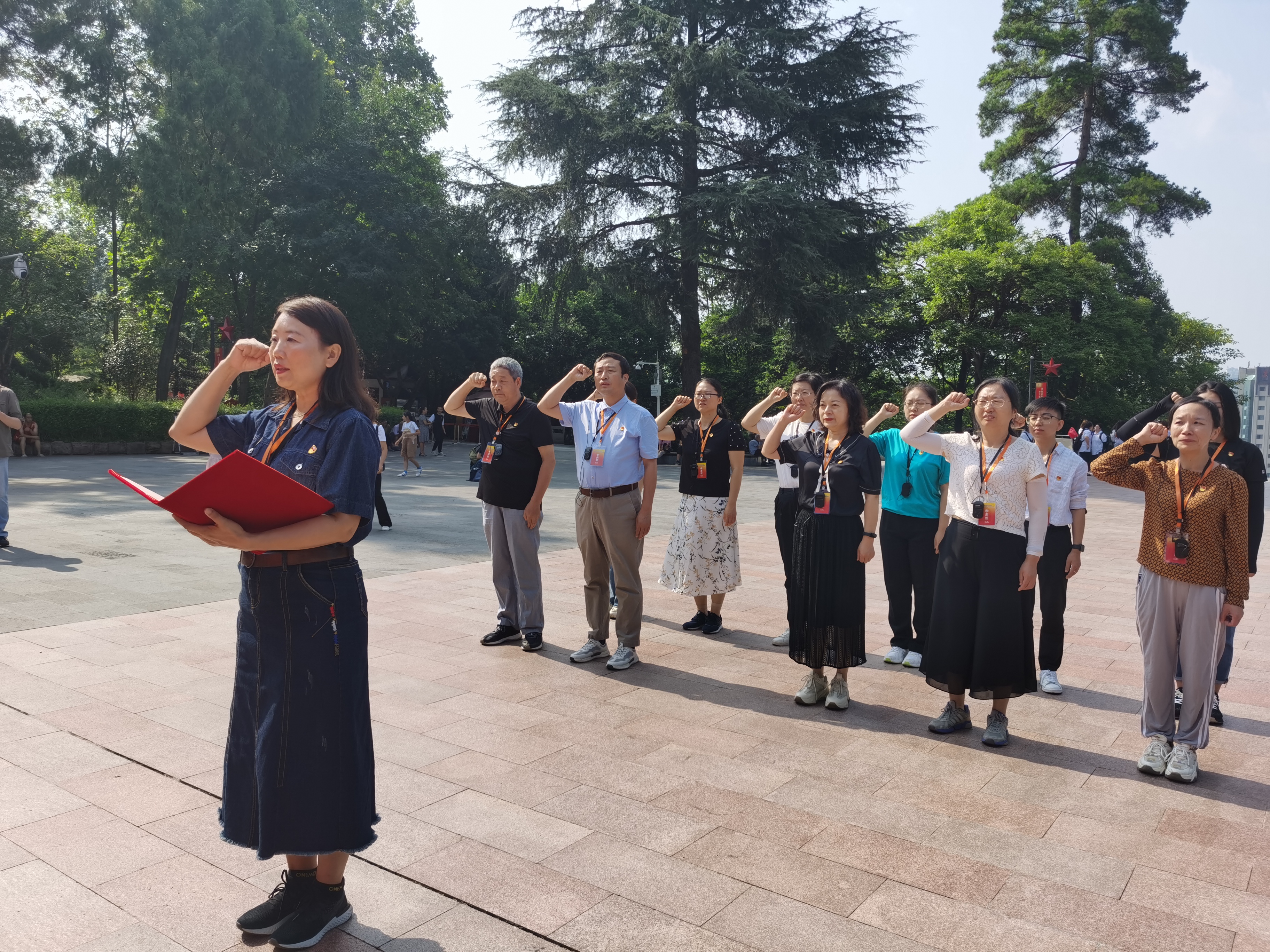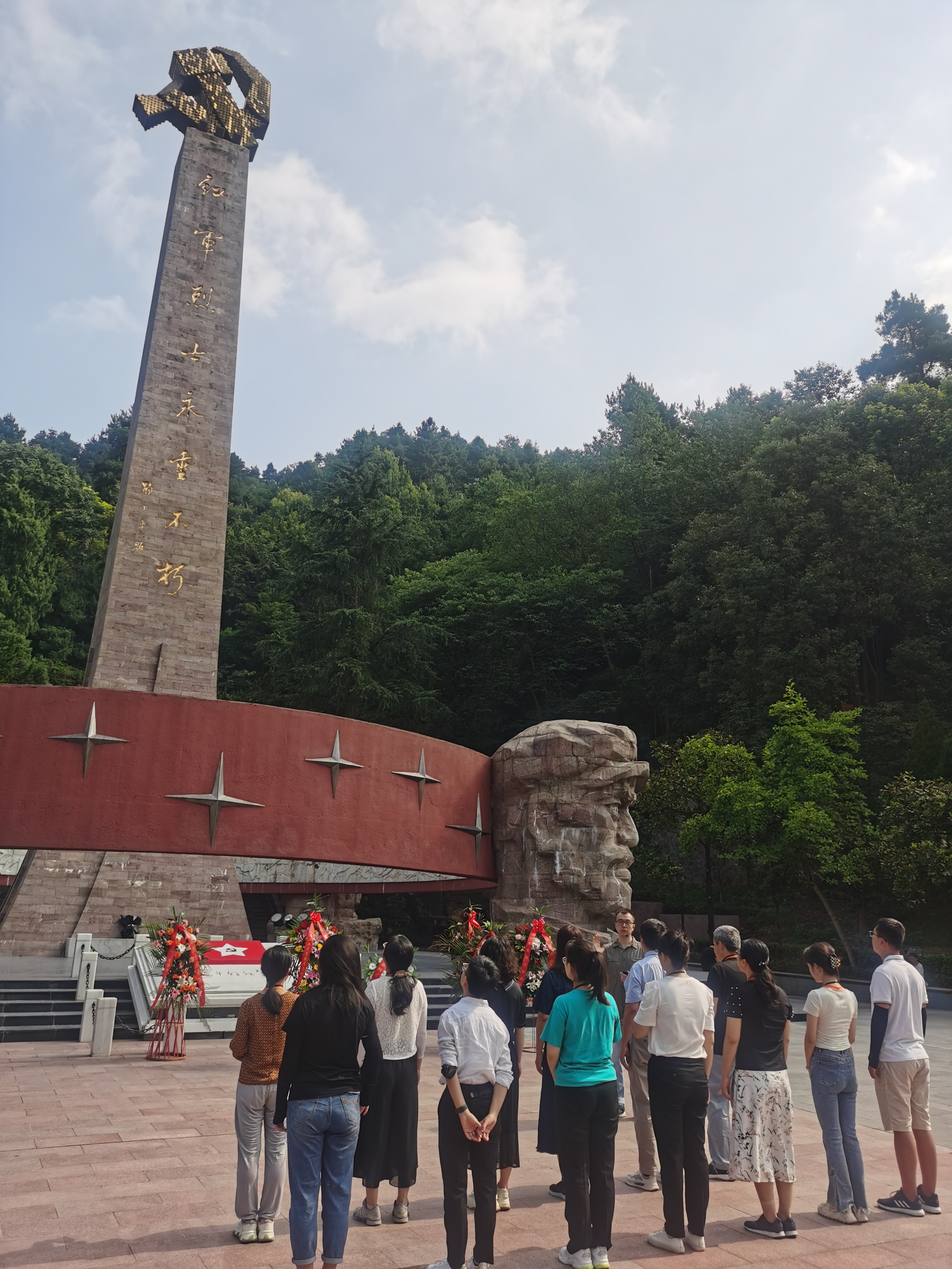 在瞻仰红军烈士纪念碑时,全体教工党员在党委书记王莉同志带领下重温入党誓词并敬献花篮。纪念碑正面由邓小平同志书写的“红军烈士永垂不朽”以及烈士们当年可歌可泣的英雄事迹无不令人动容,为共产主义事业奋斗终身的理想信念更深深地镌刻在每个人心中。