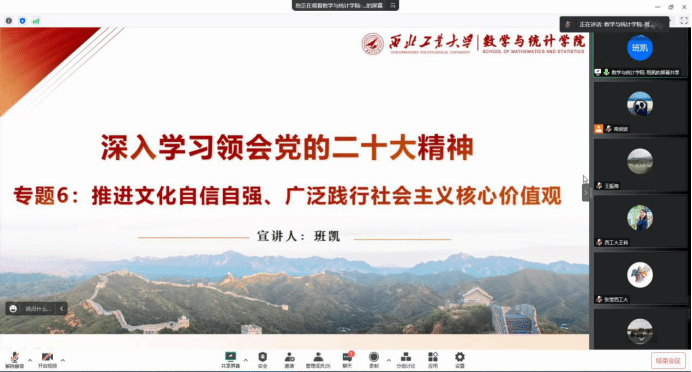 本次学习研讨的五个主题使中心组成员更加深入学习领会了党的二十大精神,香香腐宅 将坚定不移全面从严治党、深入推进新时代党的建设新的伟大工程,坚持立德树人根本任务,通过对于社会服务、文化自信、国际合作和防范化解风险挑战方面的专题学习,明确了要进一步加快学院发展,为学校“双一流”建设贡献力量。