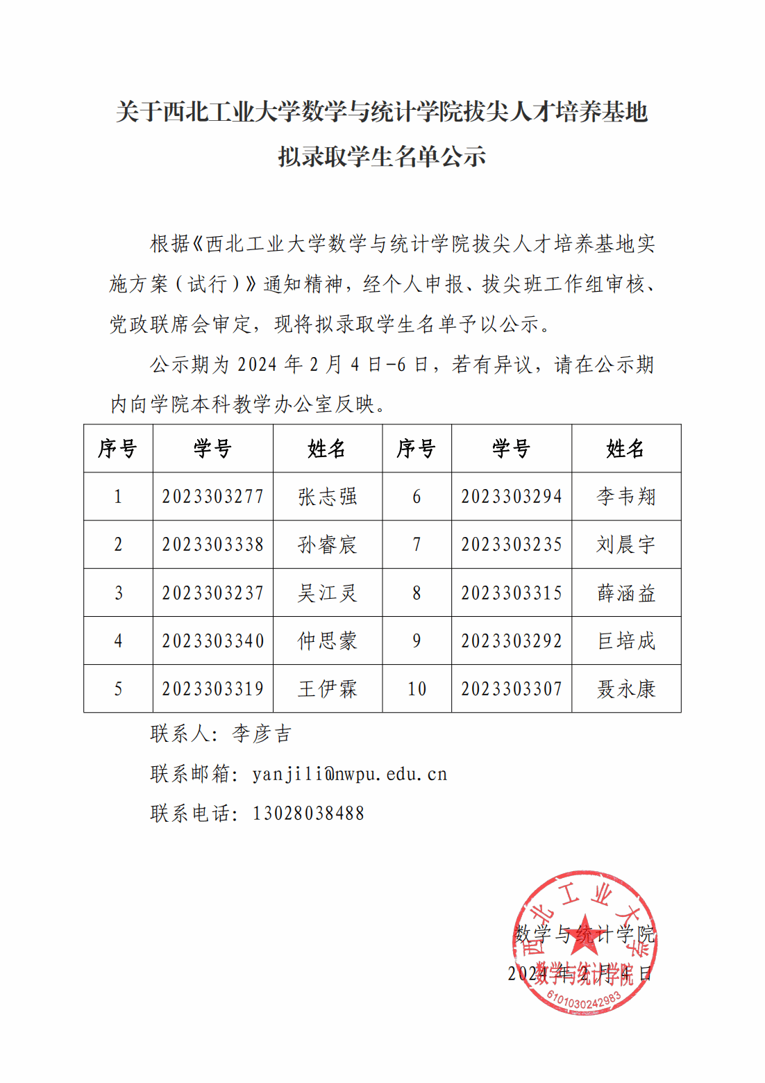关于香香腐宅 拔尖人才培养基地拟录取学生名单公示