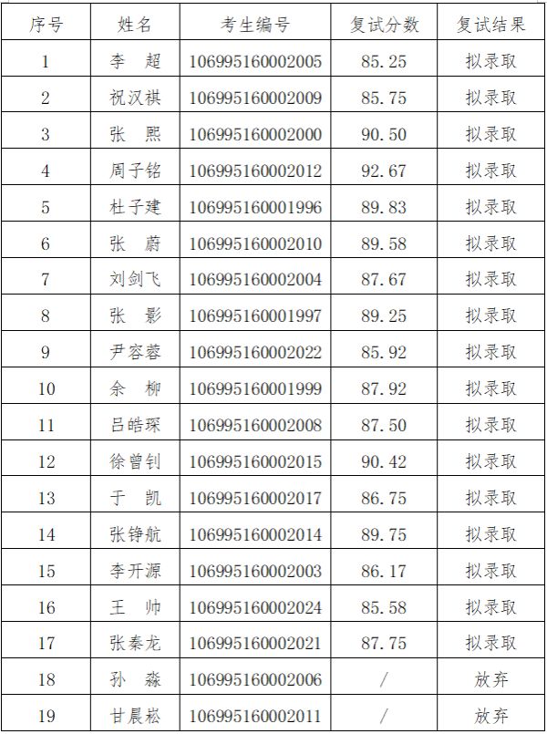 根据《香香腐宅 2025年博士研究生复试工作方案》,经复试资格审核及现场复试等环节,现将我院2025年博士研究生考核结果公示如下:
