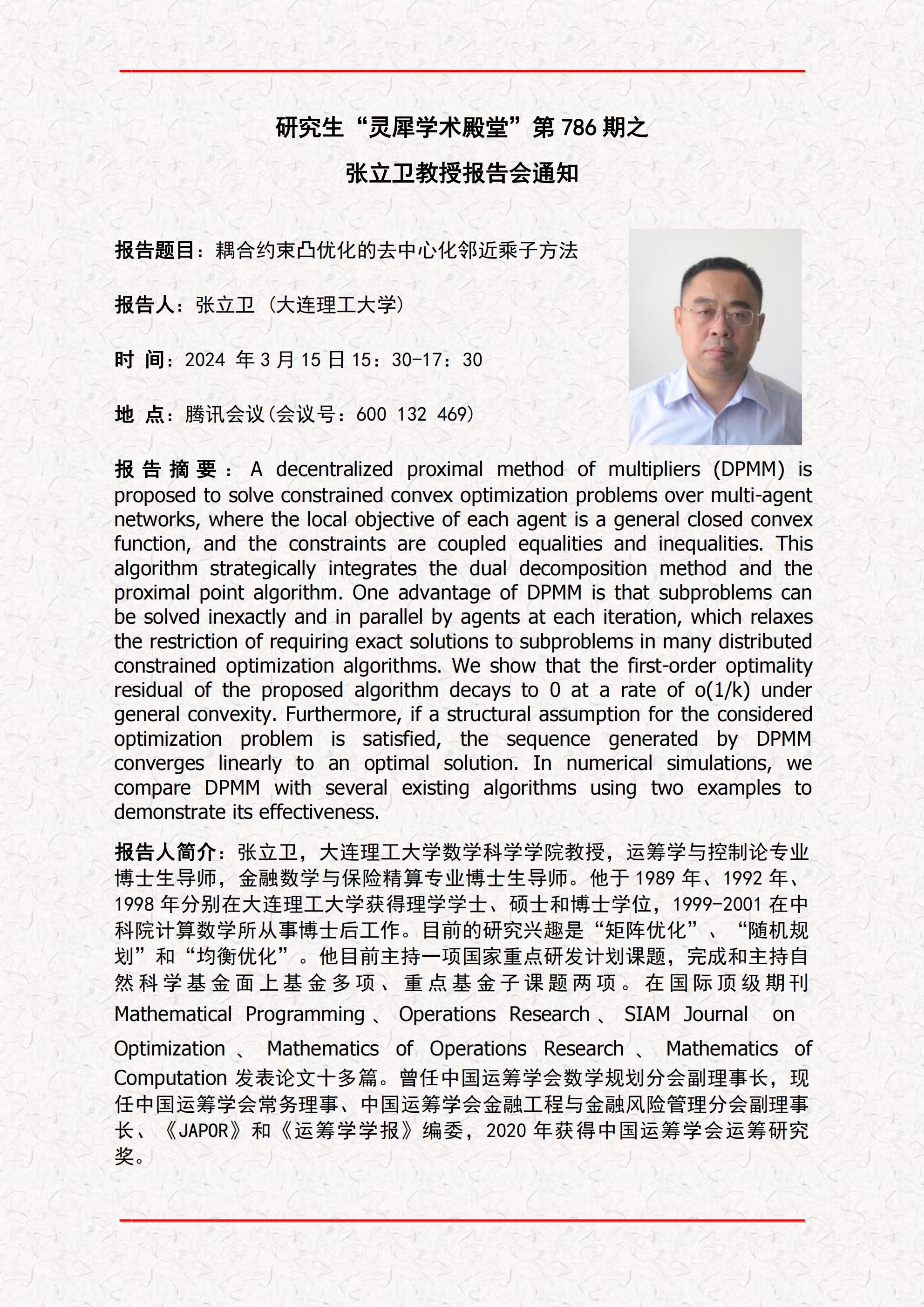 “灵犀学术殿堂”第 786 期