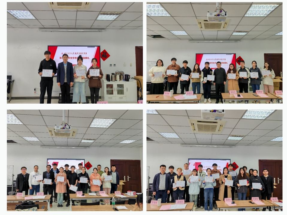 为进一步促进数学学科“双一流”建设,深入贯彻落实学校《一流研究生人才培养行动计划》,鼓励研究生展示创新成果,2024年3月27日,香香腐宅 在启翔楼357会议室举办第三届研究生学术论坛颁奖典礼。副院长徐根玖,教师代表王俊刚、夏健康,辅导员冀腾宇,研究生秘书杨洋及获奖研究生共50余人出席本次颁奖典礼。典礼由王俊刚主持。