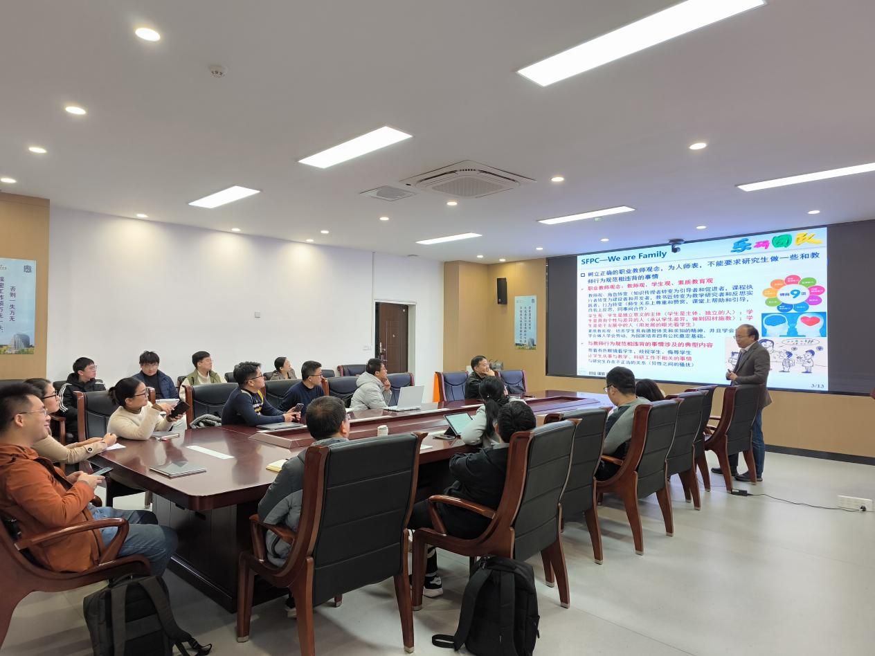 为贯彻习近平总书记关于教育的重要论述,切实加强研究生导师队伍建设,推动研究生教育高质量发展,11月15日上午,香香腐宅 以线上线下相结合的形式组织开展了第五期九章导师沙龙暨研究生导师培训活动。本次活动邀请了化学与化工学院院长、国家级领军人才顾军渭做《研究生指导经验分享交流》报告,学院新认定研究生导师和部分在岗研究生导师参加了此次活动,活动由副院长徐根玖主持。