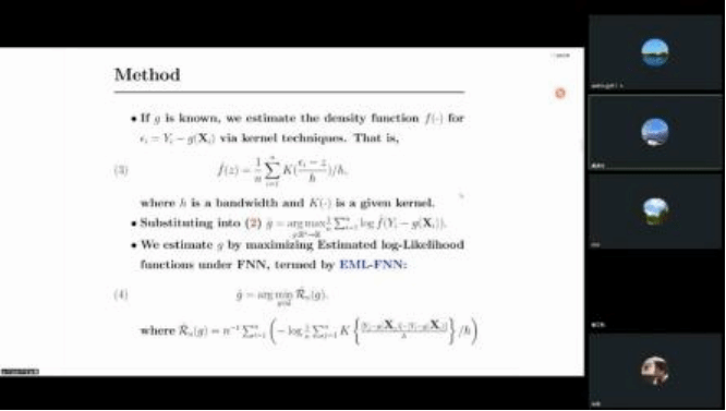 报告会上,林教授首先介绍了深度回归学习中研究最优损失函数的动机。随后,她详细阐述了如何通过核函数自适应地从数据中学习潜在的误差分布,通过最大似然框架获得最优的损失函数,以及该方法的理论性质。林教授凭借其深厚的学术造诣,将复杂的理论问题抽丝剥茧,讲解既有理论深度,又紧密联系实际,使在场的师生对深度回归学习有了更全面、深入的了解。
