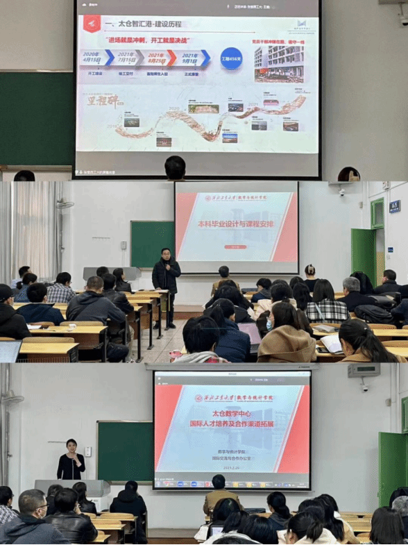 首先,大会播放了太仓智汇港、太仓长三角研究院及太仓市的宣传片。随后,张莹副书记具体介绍了太仓智汇港的设施建设、教学环境、党团建设活动以及研学实践活动;郭千桥副院长介绍了太仓智汇港在软件、硬件方面的优势,鼓励学生前往太仓智汇港进行研学实践;都琳副院长介绍了学院留学生的培养情况及国际合作渠道的拓展,并鼓励学院师生在太仓智汇港开展国际交流活动。