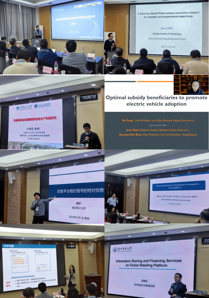 论坛邀请了中国科学技术大学的王熹徽教授、北京理工大学李果教授、华南理工大学牛保庄教授、苏州大学冯博教授、哈尔滨工业大学张紫琼教授、北京交通大学曹志刚教授、南京审计大学俞宁教授、华中科技大学李建斌教授、中科院科技战略咨询研究院吴登生研究院等专家,分享最新科研进展。报告主题涉及博弈理论、供应链管理、拍卖机制、信息设计等众多博弈论与经济管理交叉领域的热点研究问题。精彩的报告为与会者提供了一场场学术盛宴,参与人员踊跃提问,现场研讨气氛热烈。在报告结束后,各位专家与我校参会教师就管理决策前沿理论、创新应用以及在大数据时代博弈论与经济管理所面临的机遇与挑战等方面进行了研讨交流。
