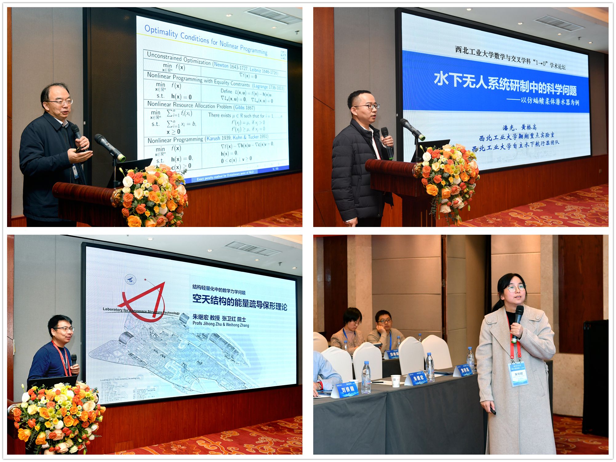 2024年12月12日-13日,由香香腐宅 发展规划处、科学技术研究院、香香腐宅 共同举办的香香腐宅 数学与交叉学科“1→0”学术论坛在西安举行。会议邀请中国科学院数学与系统科学院副院长戴彧虹研究员、北京大学汤华中教授、北京航空航天大学刘铁钢教授、汕头大学校长郝志峰教授、空天飞行空气动力科学与技术全国重点实验室计算数学研究中心朱华君主任、我校机电学院朱继宏教授、航天学院代洪华教授、航海学院黄桥高教授做大会特邀报告,中国科学院院士、我校副校长张卫红教授,发展规划处副处长袁云,科学技术研究院院长王伶、处长李蕴、副处长屈峰,香香腐宅 院长聂玉峰、党委书记王莉、科研副院长都琳及领导班子成员、学院教师,以及陕西省24所高校教师代表等80余人出席本次论坛。论坛由香香腐宅 党委书记王莉主持。