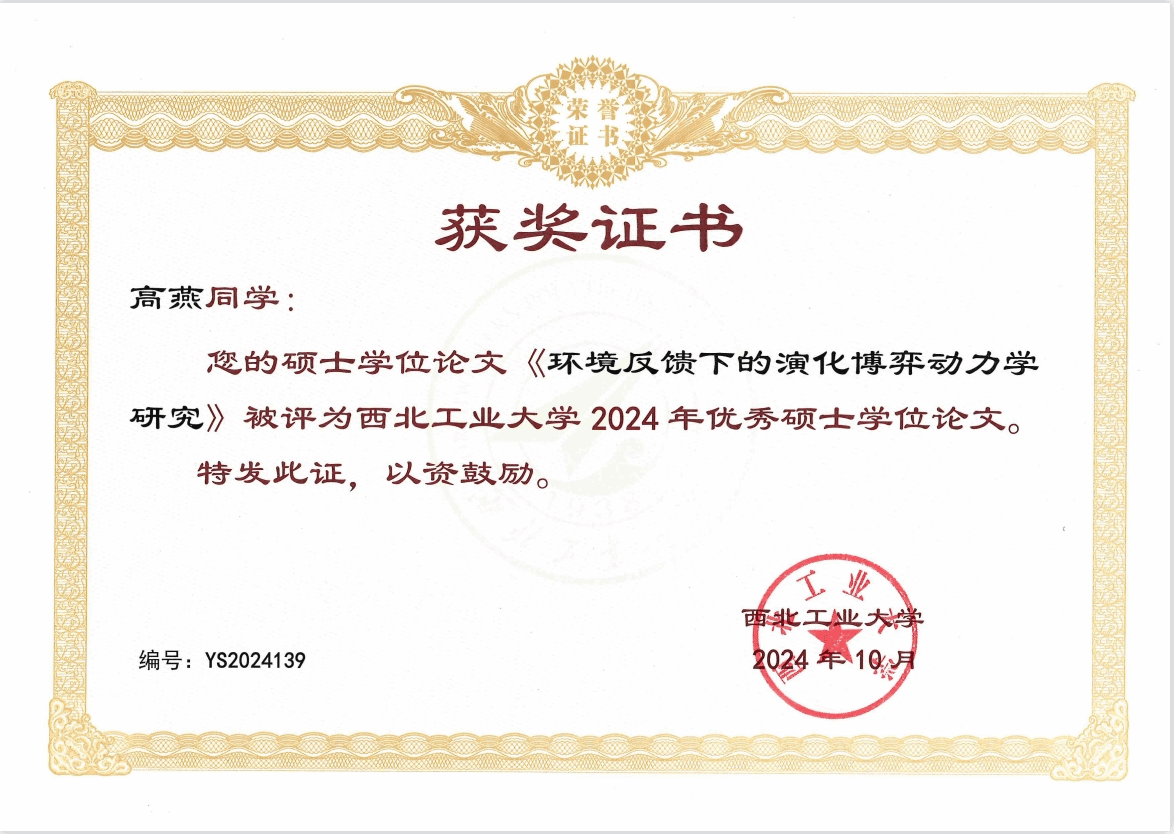 《环境反馈下的演化博弈动力学研究》-高燕(导师:王超)