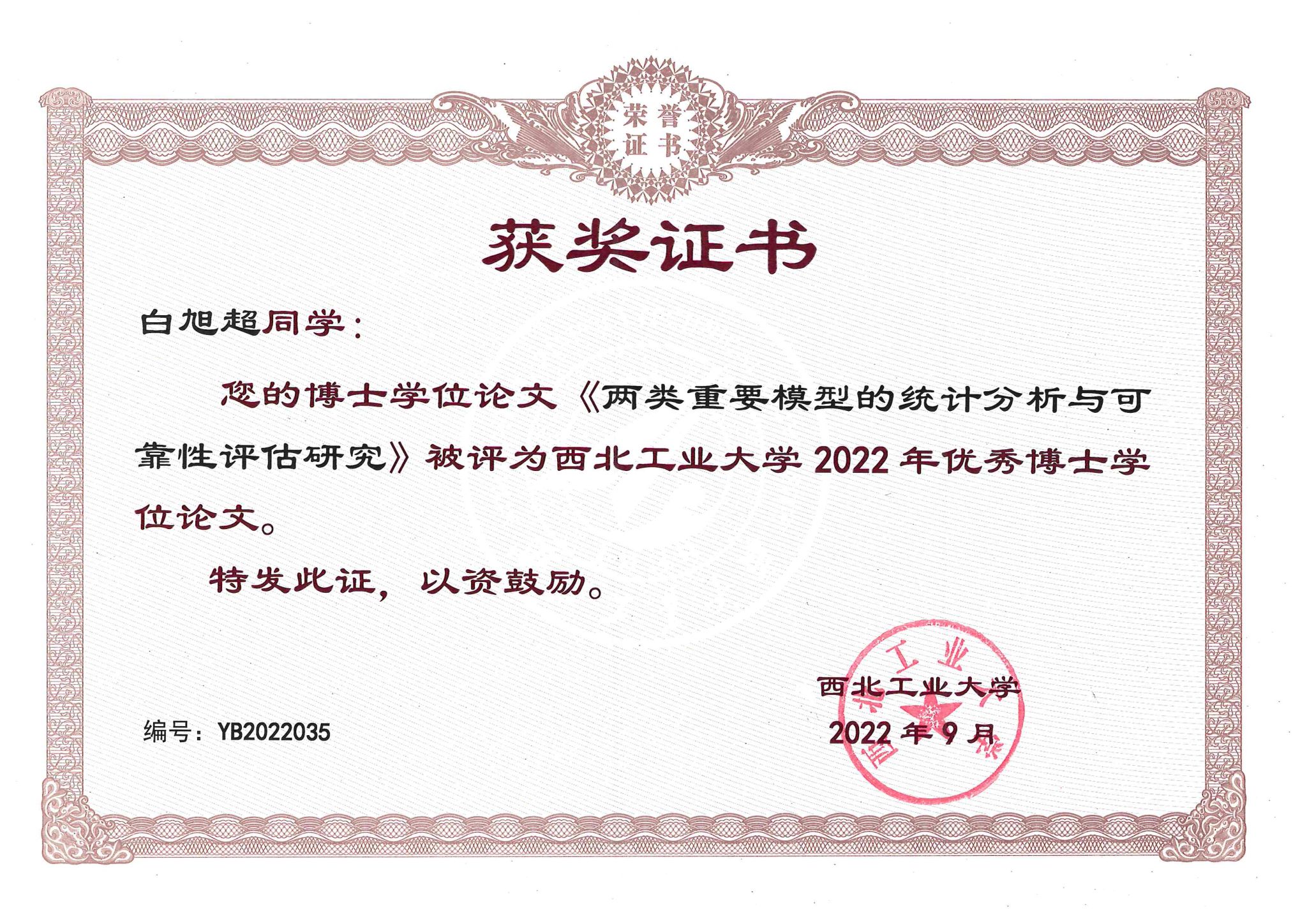 白旭超,男,2014级直博生,师从师义民教授,研究方向为概率论与数理统计。以第一作者身份在国内外著名学术期刊上累计发表论文10篇,均被SCI检索收录(包含中科院TOP期刊论文6篇);2021年3月获批陕西省自然基础研究计划项目一项(2021JQ-186),2021年8月获批国家自然科学基金青年基金项目一项(12101475),2022年9月获批西安市科学技术局软科学研究项目一项(22RKYJ0065)。曾获博士研究生国家奖学金(2018),陕西高等学校科学技术一等奖(高可靠产品加速寿命试验的统计推断与可靠性评估),2021,第三完成人。