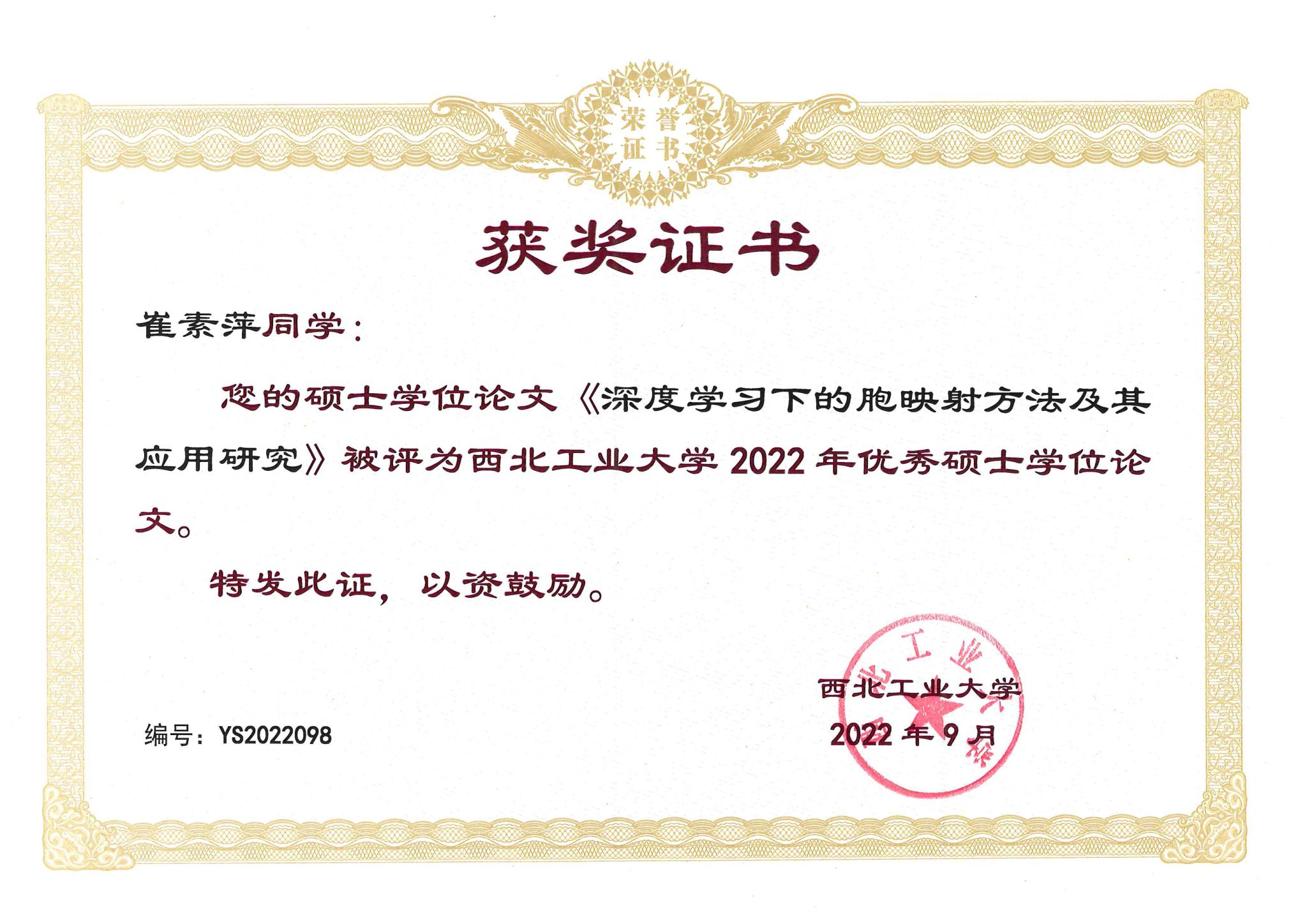 第一届研究生学术论坛获二等奖,并荣获2022年优秀毕业生称号。