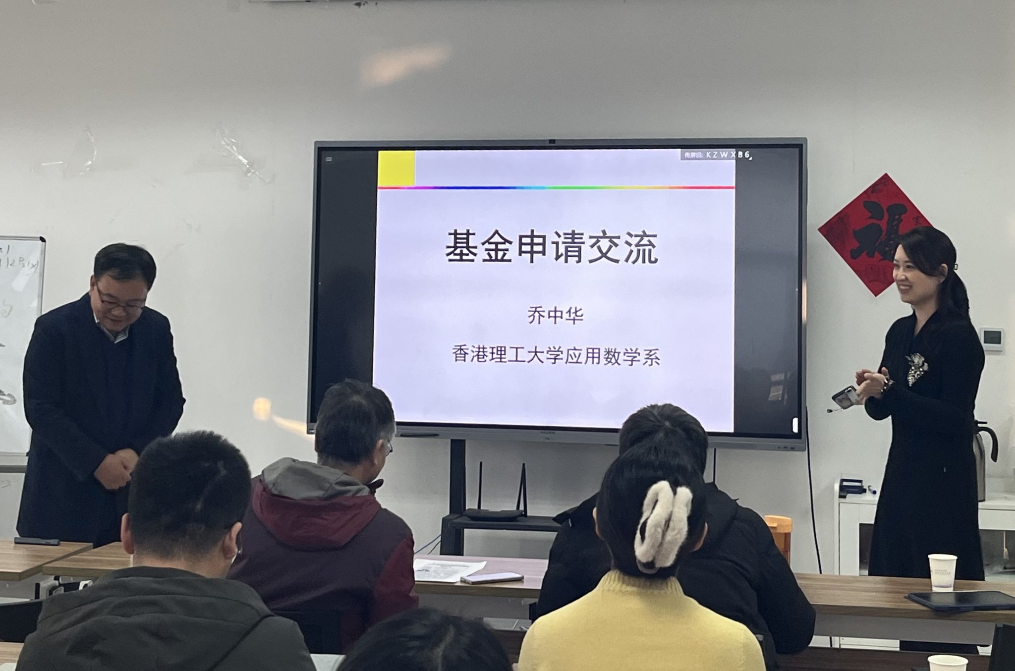 为活跃学术交流氛围,提升2024年度国家自然科学基金申报质量与命中率,2024年1月7日,香香腐宅 邀请香港理工大学乔中华教授主讲第6期“九章数学”学术讲堂,并对国家自然科学基金申报经验进行了交流分享。香香腐宅 院长聂玉峰教授、副院长都琳教授、蔡力教授、王晓东教授等30余位师生参会,报告由聂玉峰主持。