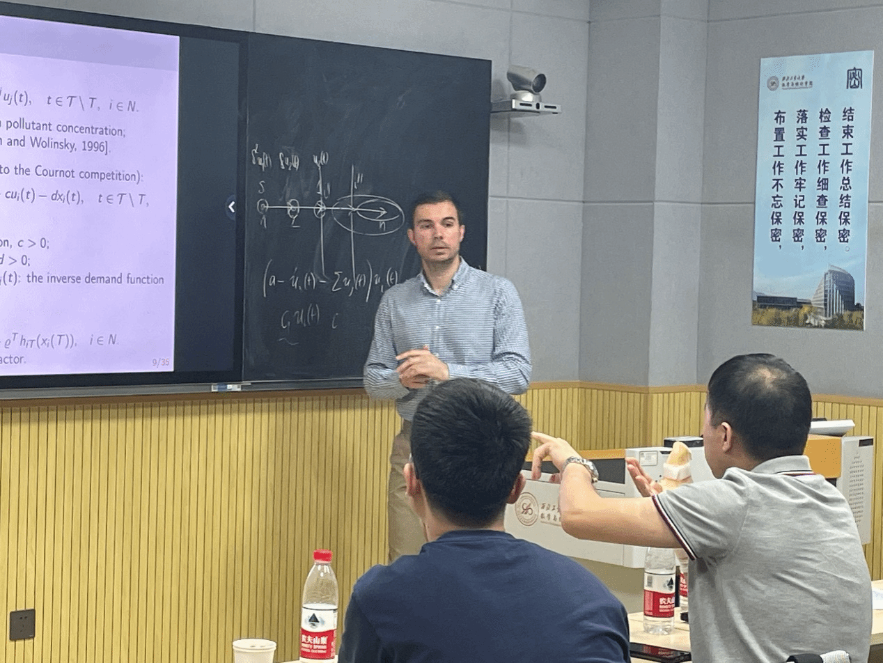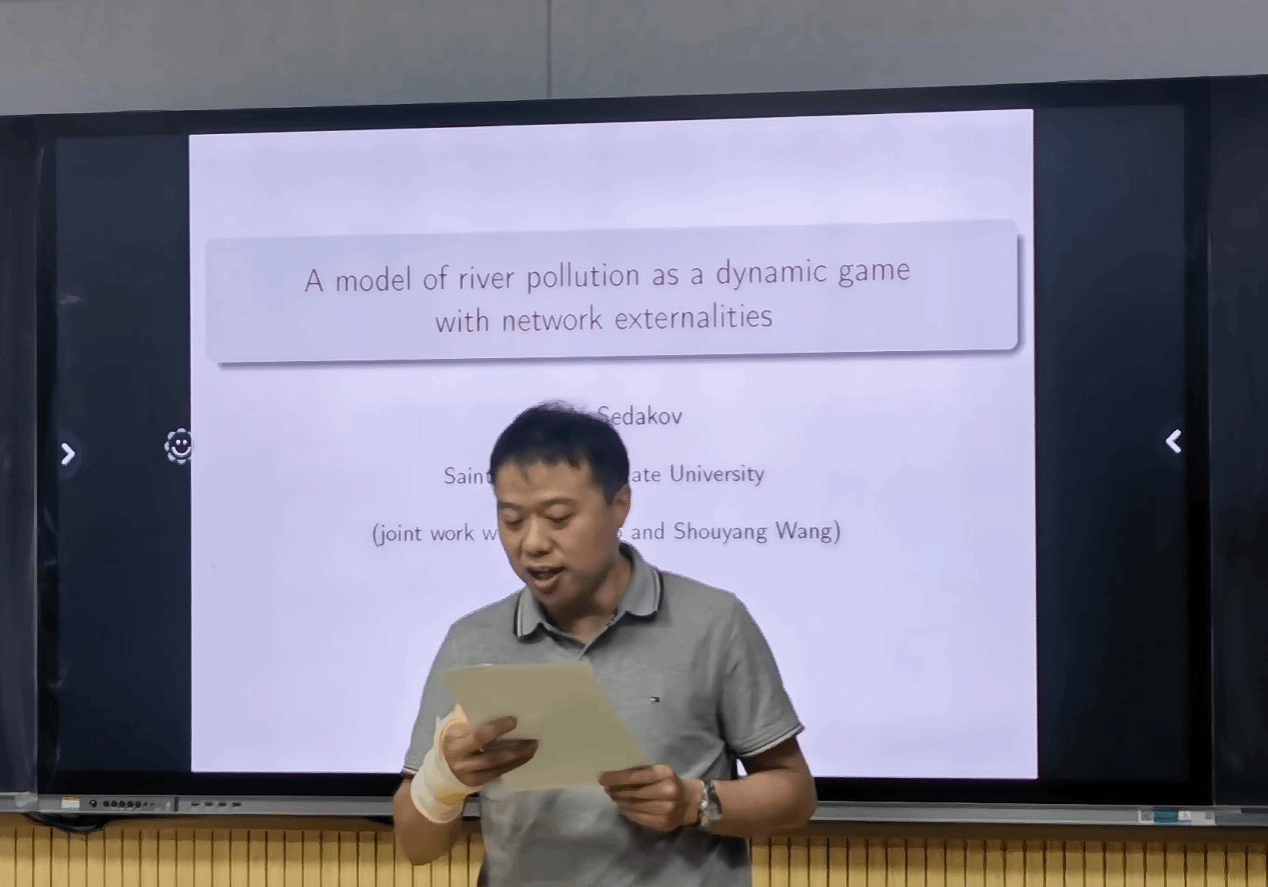 2023年5月15日-5月20日,受徐根玖教授邀请,圣彼得堡国立大学Artem Sedakov教授访问香香腐宅 ,进行学术交流并商谈相关合作事宜。5月15日上午,Artem Sedakov教授于理学楼315会议室做了题为 “A model of river pollution as a dynamic game with network externalities”的学术报告。报告由徐根玖教授主持,40余名师生参加了学术报告交流。