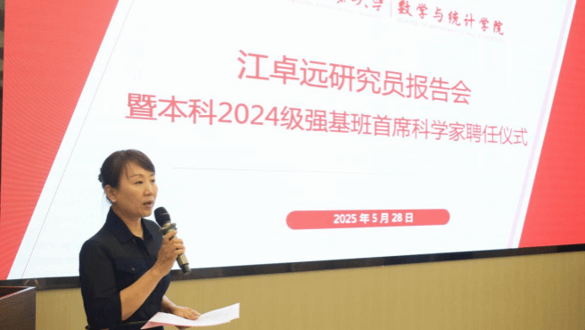 聘任仪式中,聂院长为江卓远研究员颁发本科2024级强基班首席科学家聘书。聂院长指出,国家、学校高度重视强化基础学科拔尖人才培养,强基班聘任首席科学家正是通过“顶尖学者引领+优质资源倾斜+国家战略驱动”的模式,破解基础学科人才培养中的“断层”“脱节” 问题,为学生提供“顶配”的学术成长环境,为国家科技自立自强筑牢人才根基。
